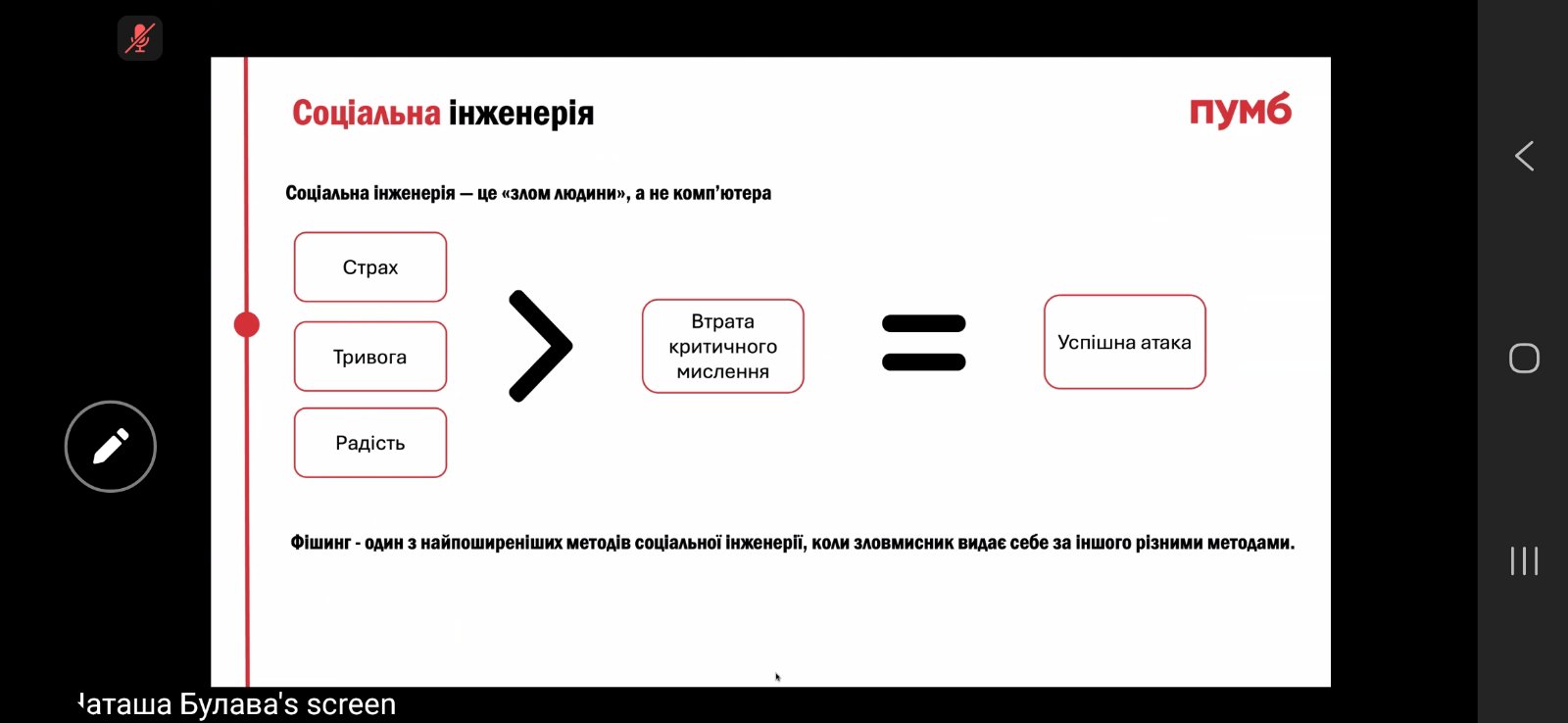 Йдеться про вебінар із кібербезпеки «SECURITY FIRST: Як не стати жертвою фінансових афер», організований ПУМБ. Основний акцент було зроблено на наданні актуальних знань та практичних інструментів для захисту від сучасних шахрайських схем.
