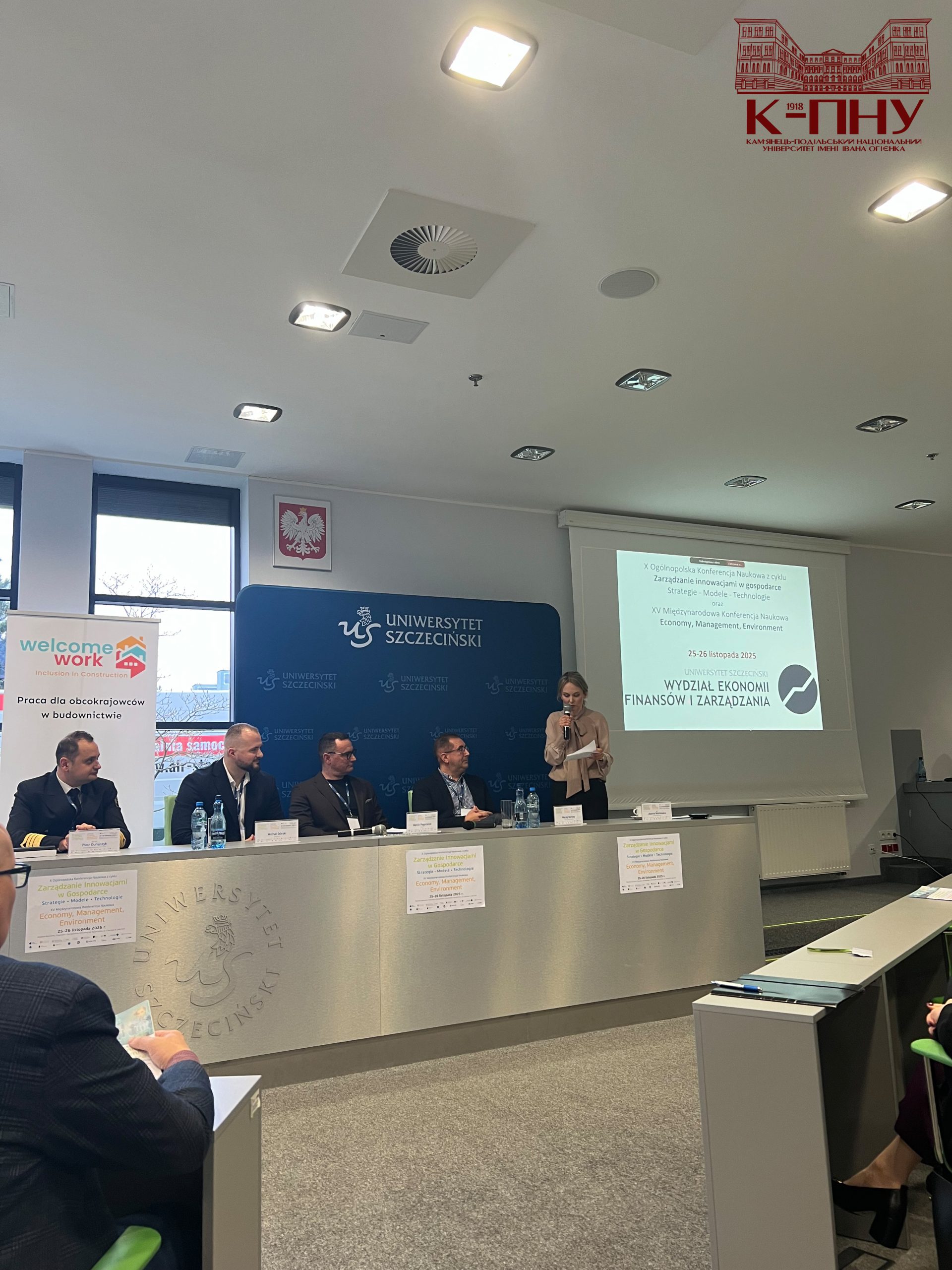 25-26 листопада 2025 року доктор економічних наук, професор, завідувач кафедри економіки підприємства Наталія Мазур взяла участь у двох виняткових наукових подіях у Щецинському університеті (м. Щецин, Польща): 10-тій Національній науковій конференції «Управління інноваціями в економіці» та 15-тій Міжнародній науковій конференції «Економіка, управління, довкілля».