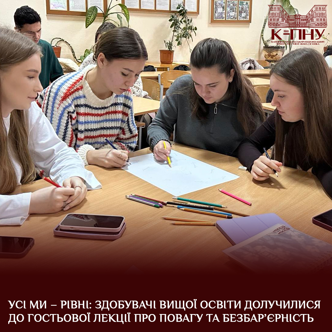 До Міжнародного дня людей з інвалідністю, який відзначається щорічно 3 грудня, здобувачі освіти 1 та 2 курсів спеціальності А4 Середня освіта (за предметними спеціальностями) ОПП «Середня освіта (Мова і література (німецька, англійська)» взяли участь у гостьовій лекції «Суспільство без бар’єрів: усі ми – рівні!», яку провела кандидат педагогічних наук, доцент, доцент кафедри спеціальної та інклюзивної освіти Оксана Дмітрієва.