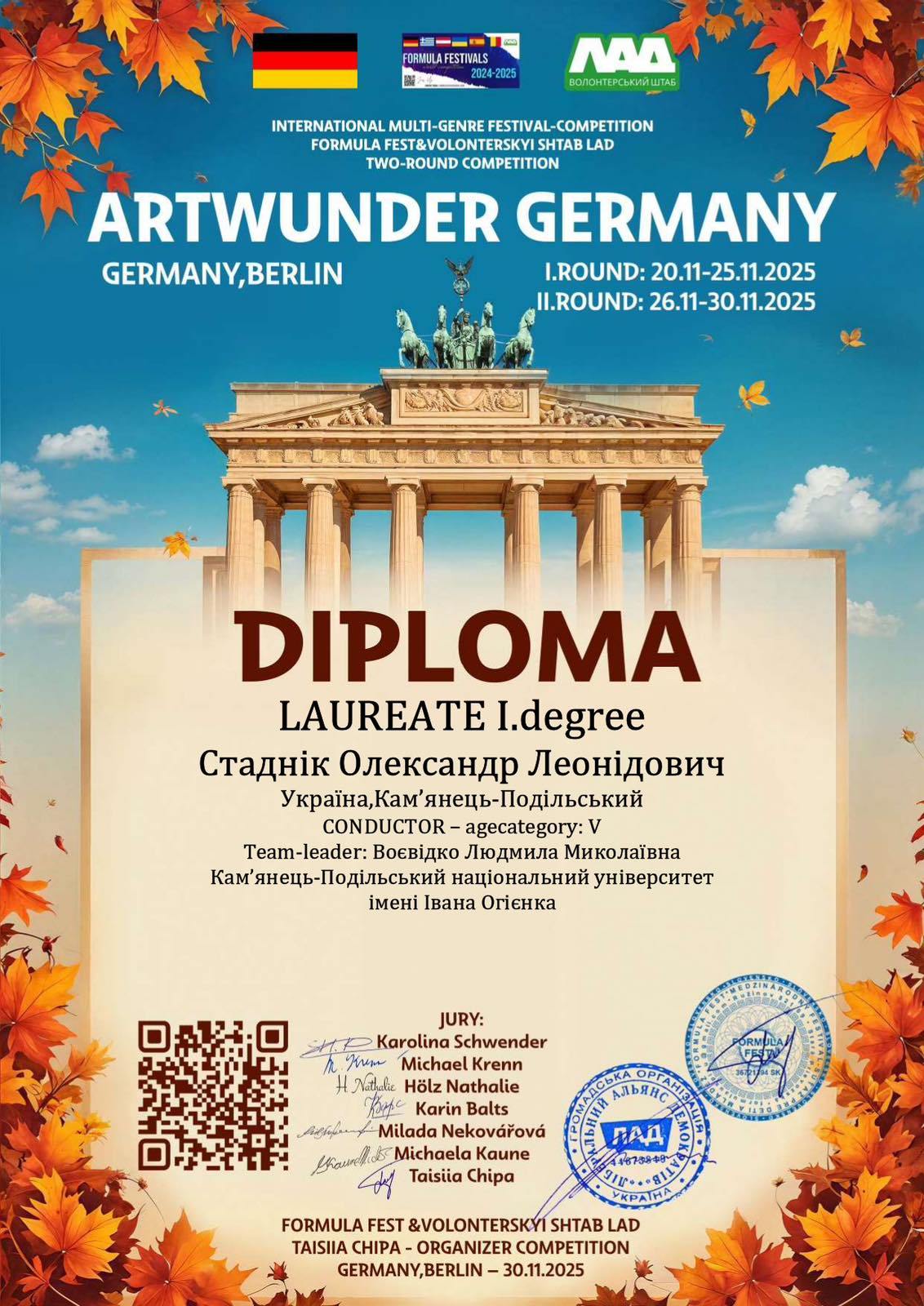 Творчий тріумф у Берліні: студент К-ПНУ Олександр Стаднік – лавреат Першої премії «Artwunder Germany»