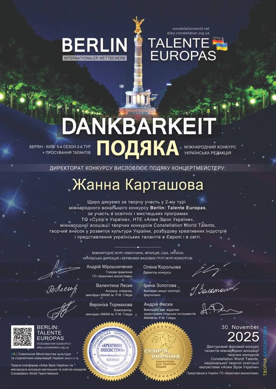 «Берлін. Таланти Європи» – міжнародний конкурс і творча освітня програма, що професійно оцінює, навчає конкурсантів, публікує, рекламує й популяризує творчі роботи.
