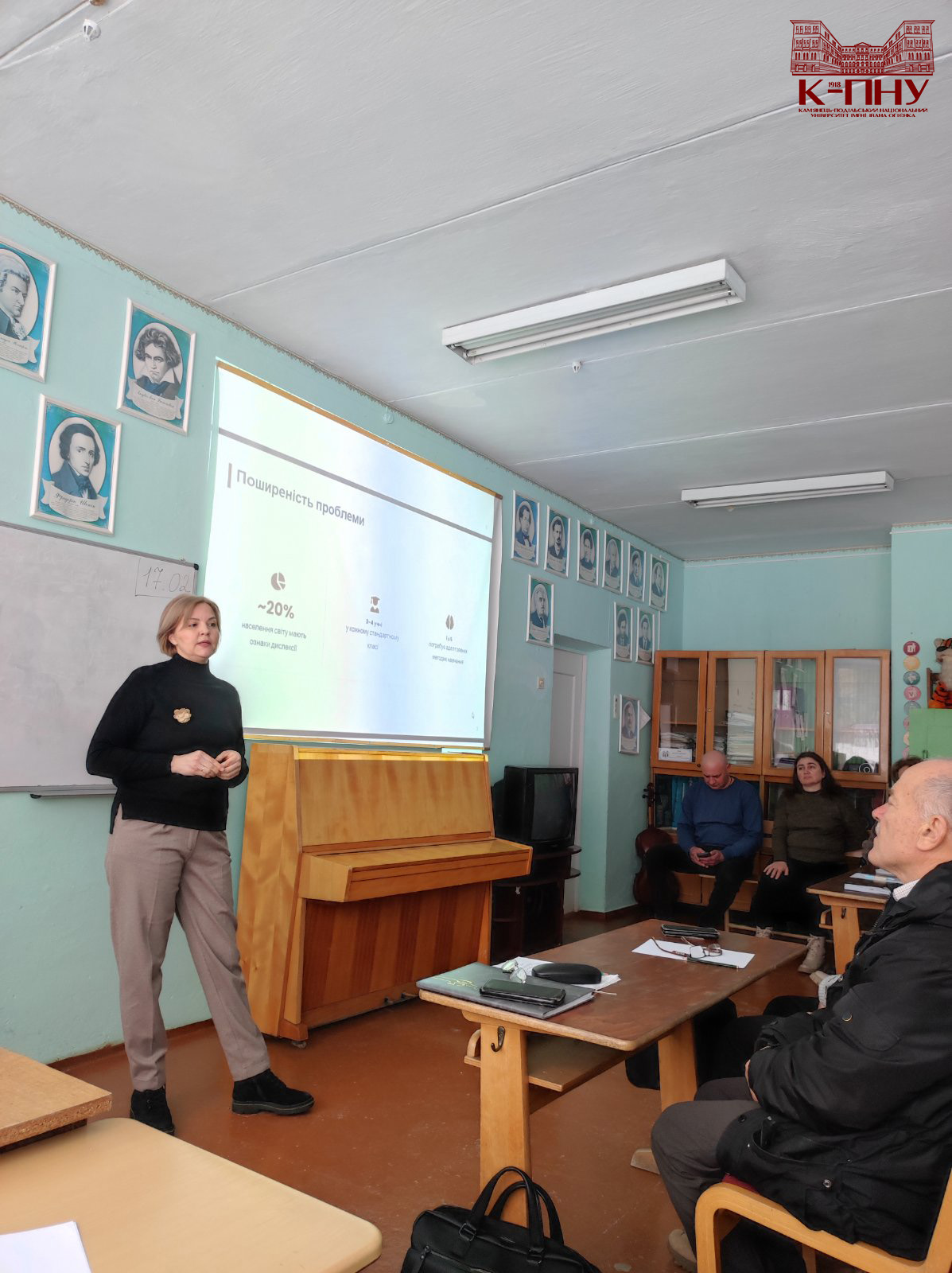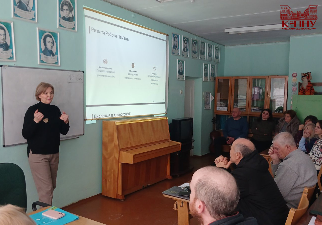 У межах лекторію кандидат педагогічних наук, доцент кафедри логопедії та спеціальних методик Оксана Константинів презентувала тему «Дислексія у навчанні мистецьких дисциплін та шляхи вирішення проблеми». У своїй доповіді вона зосередила увагу на особливостях прояву дислексії під час опанування мистецьких предметів, окреслила труднощі, із якими можуть стикатися учні, та запропонувала ефективні стратегії підтримки. Особливий інтерес викликали практичні поради щодо адаптації навчального матеріалу.