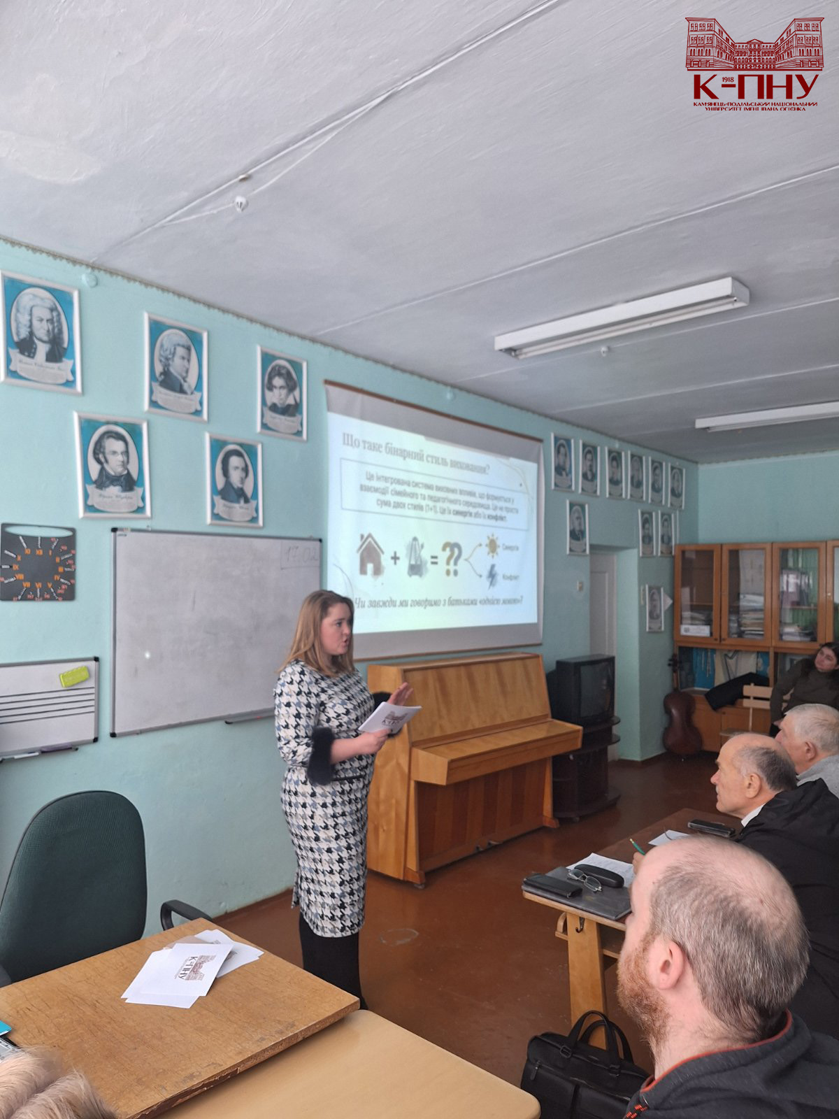 Не менш актуальною стала лекція кандидата педагогічних наук, старшого викладача кафедри теорії та методик початкової освіти Ірини Дорож з теми «Вплив бінарного (батьки – викладач) стилю виховання на розвиток дитини». Лекторка акцентувала на важливості партнерської взаємодії між родиною й педагогами, наголосивши, що узгодженість виховних підходів є запорукою гармонійного розвитку особистості дитини, формування її впевненості та творчого потенціалу.