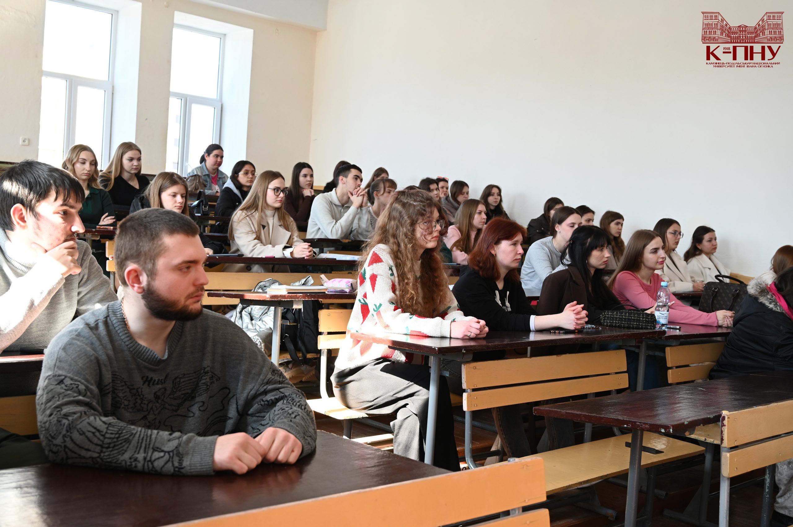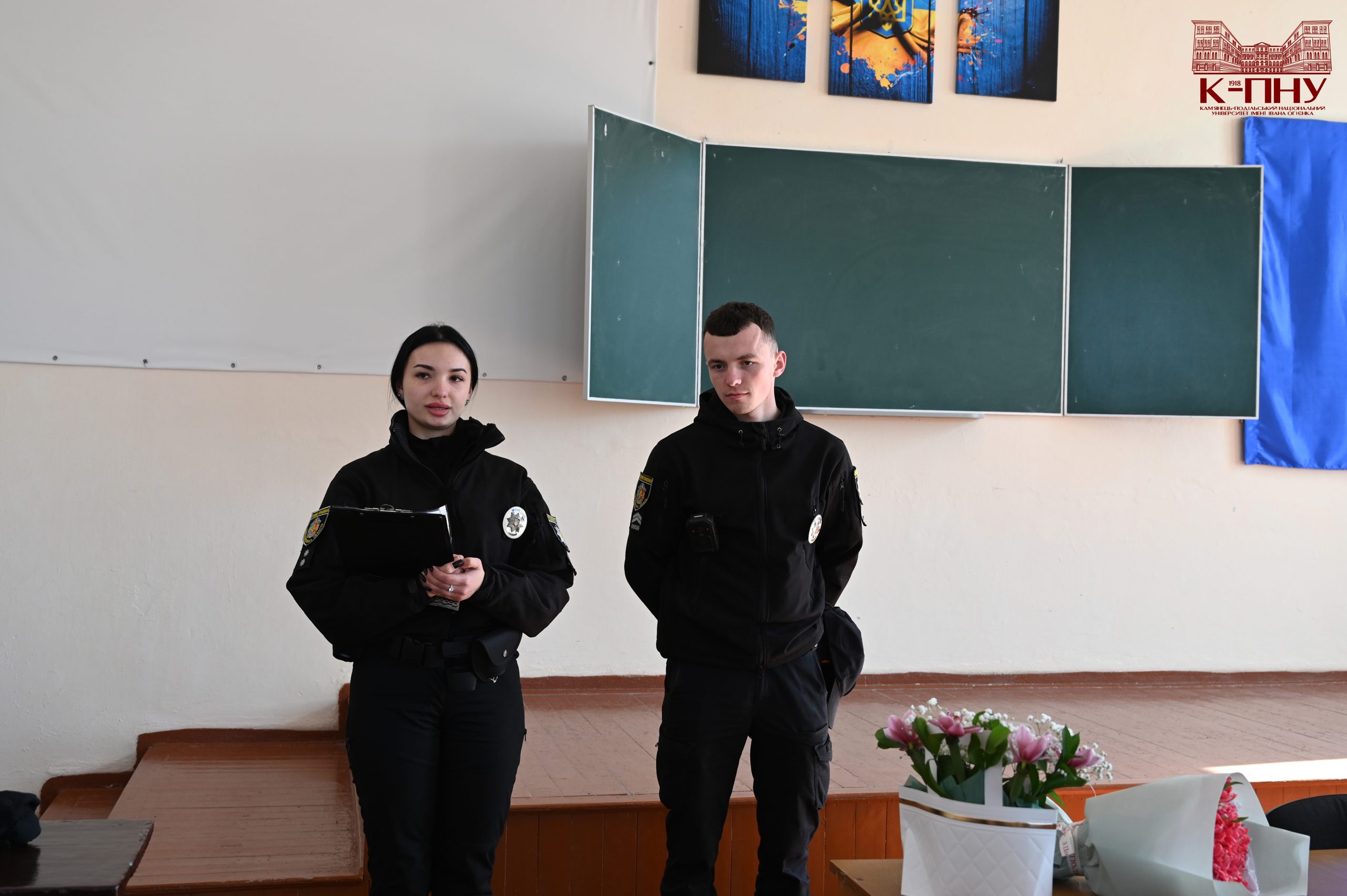 9 березня 2026 року на факультеті іноземної філології К-ПНУ відбулася зустріч здобувачів вищої освіти з представниками правоохоронних органів. Темою зустрічі стало обговорення питань, що стосуються попередження протиправних дій серед здобувачів вищої освіти та застереження їх від можливих небезпек, зокрема в умовах сучасних соціальних і політичних реалій.