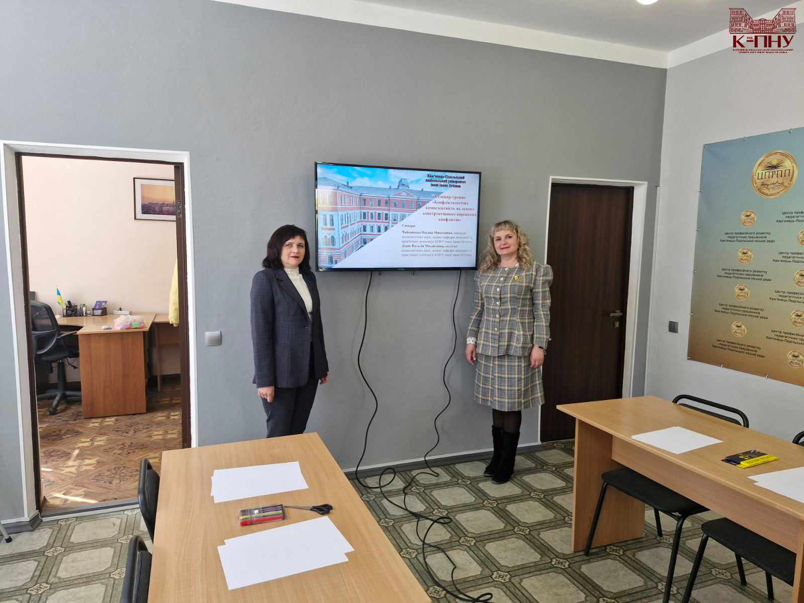 16 квітня в межах співпраці з Центром професійного розвитку педагогічних працівників Кам’янець-Подільської міської ради відбувся семінар-тренінг для педагогів закладів загальної середньої освіти з теми «Конфліктологічна компетентність як основа конструктивного вирішення конфлікту».