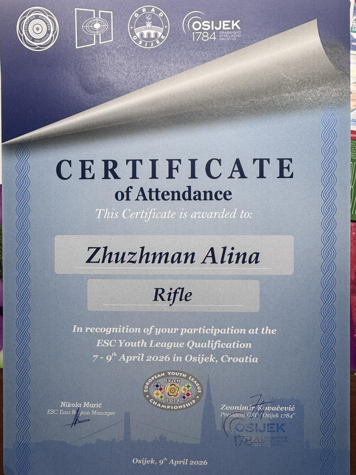 З 7 по 9 квітня 2026 року в місті Осієк (Хорватія) відбувся відбірковий етап Європейської молодіжної ліги зі стрільби – European Youth League Shooting 2026 – Osijek.