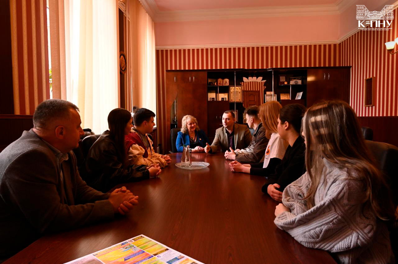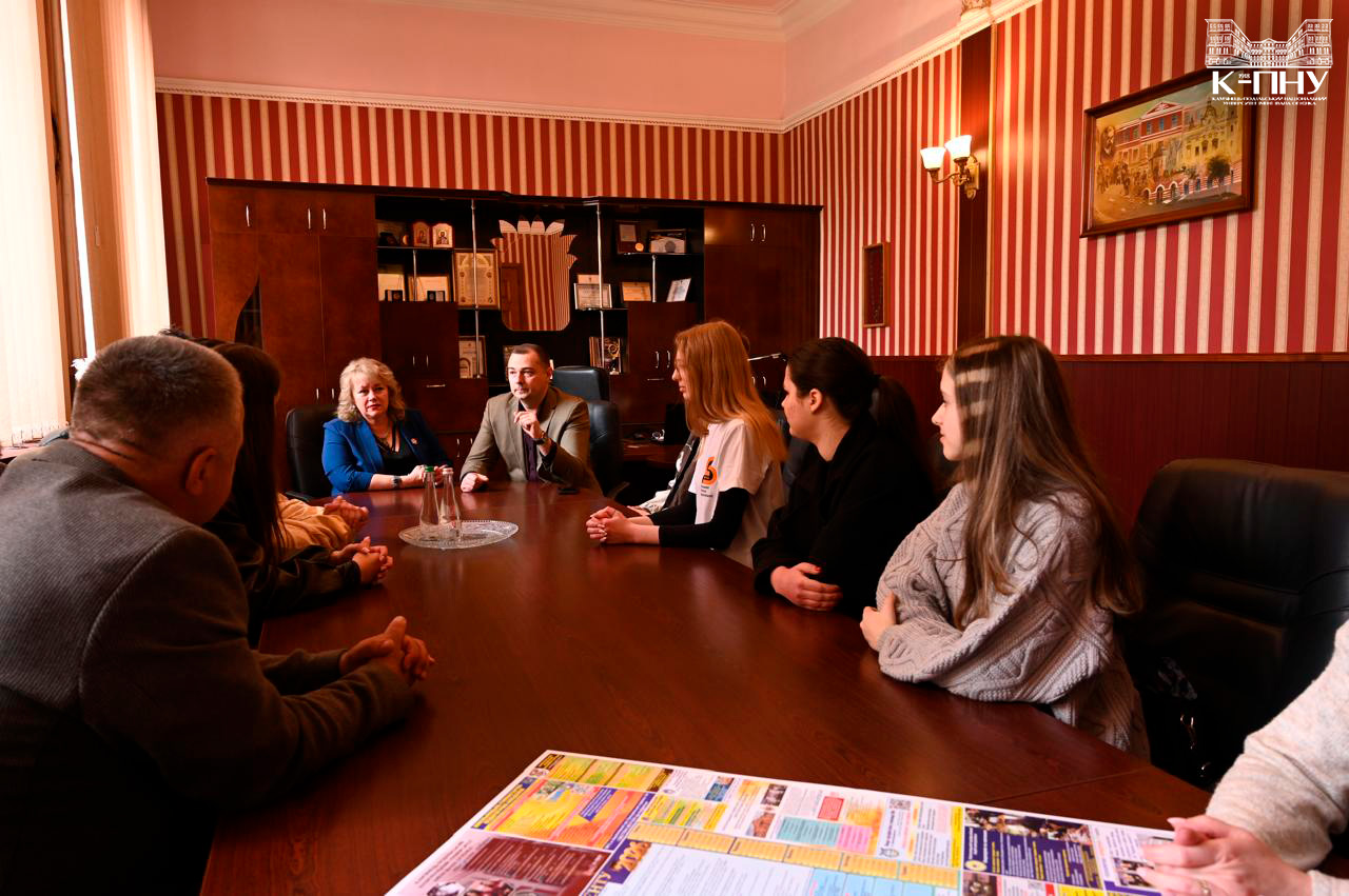 17 квітня в межах Дня відкритих дверей в Університеті Огієнка відбулася зустріч в.о. ректора Наталії Бахмат, спікера студентського сенату Тараса Гринчука й представників органів студентського самоврядування К-ПНУ з в.о. ректора ЗВО «Подільський державний університет» Андрієм Зеленським, проректором із навчальної роботи Олександром Семеновим і студентським активом закладу.