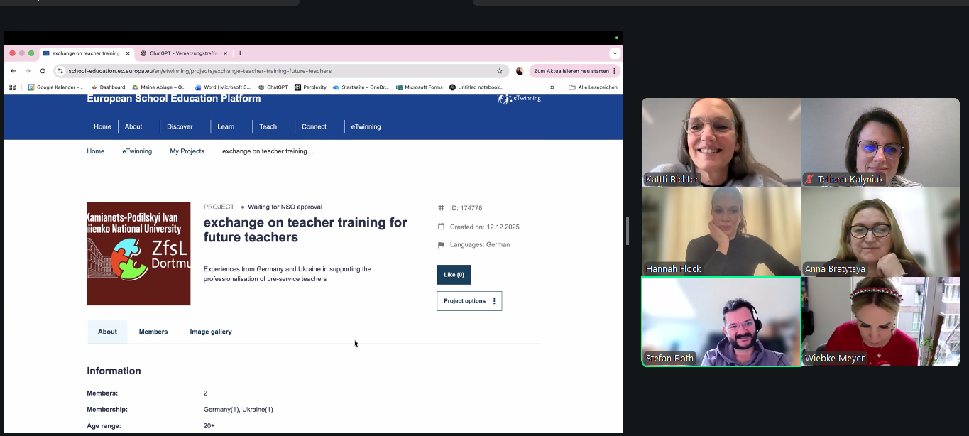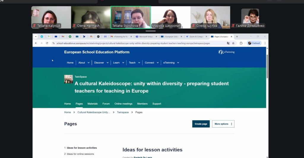 У межах реалізації міжнародної програми eTwinning відбулась онлайнова зустріч представників Кам’янець-Подільського національного університету імені Івана Огієнка Тетяни Калинюк, завідувача кафедри німецької мови, доцента, й Тетяни Сторчової, керівника відділу міжнародних зв’язків, доцента кафедри англійської мови із колегами з Горлівського інституту іноземних мов Державного вищого навчального закладу «Донбаський державний педагогічний університет».