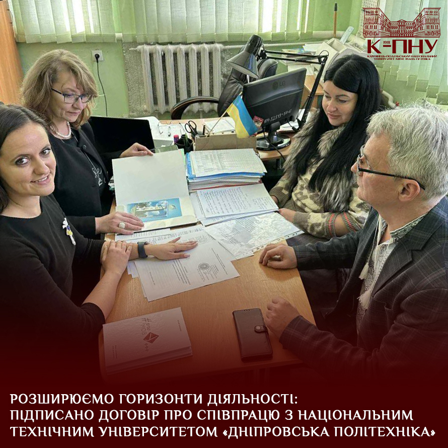 Кам’янець-Подільський національний університет імені Івана Огієнка продовжує активно зміцнювати освітні зв’язки з провідними закладами вищої освіти України. Нещодавно Університет Огієнкапідписав договір про співпрацю з Національним технічним університетом «Дніпровська політехніка» — першим закладом вищої гірничої освіти України.