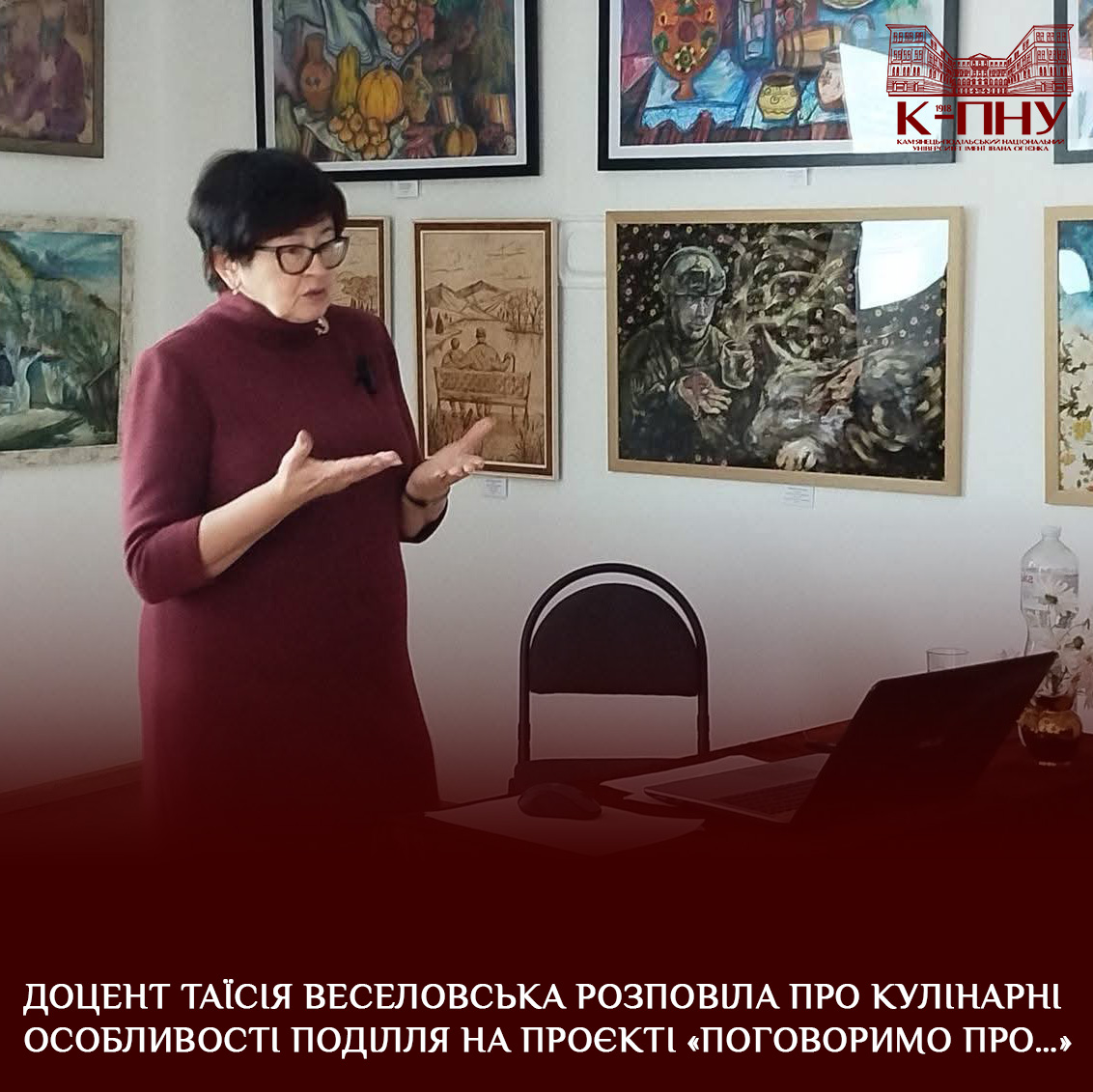 6 листопада доцент кафедри туризму та готельно-ресторанної справи К-ПНУ Таїсія Веселовська була запрошена в ролі спікера на проєкт «Поговоримо про…», який реалізує Кам’янець-Подільський державний історичний музей-заповідник.