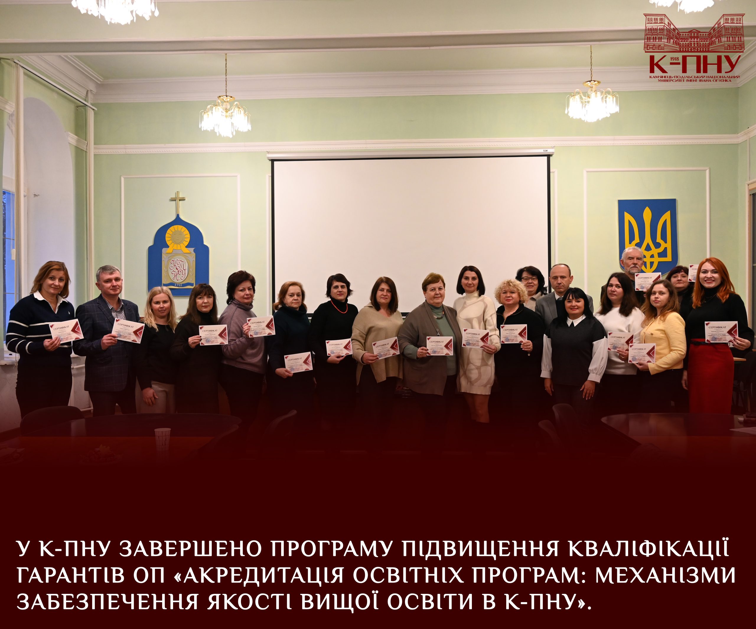 У К-ПНУ завершено програму підвищення кваліфікації гарантів ОП «Акредитація освітніх програм: механізми забезпечення якості вищої освіти в К-ПНУ».