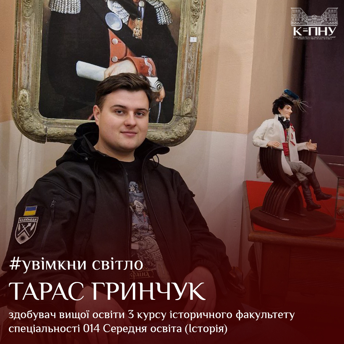 Тарас Гринчук – здобувач вищої освіти 3 курсу історичного факультету спеціальності 014 Середня освіта (Історія) за освітньо-професійною програмою Середня освіта (Історія та правознавство).