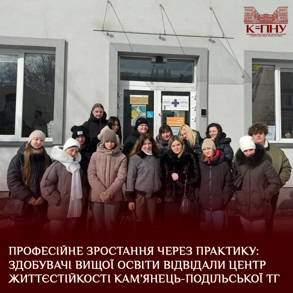 12 лютого 2026 року для здобувачів вищої освіти першого (бакалаврського) рівня ОПП Соціальна робота та соціально-психологічне консультування та ОПП Соціально-психологічна реабілітація відбулася навчальна ознайомлювальна екскурсія до Центру життєстійкості Камʼянець-Подільської ТГ.