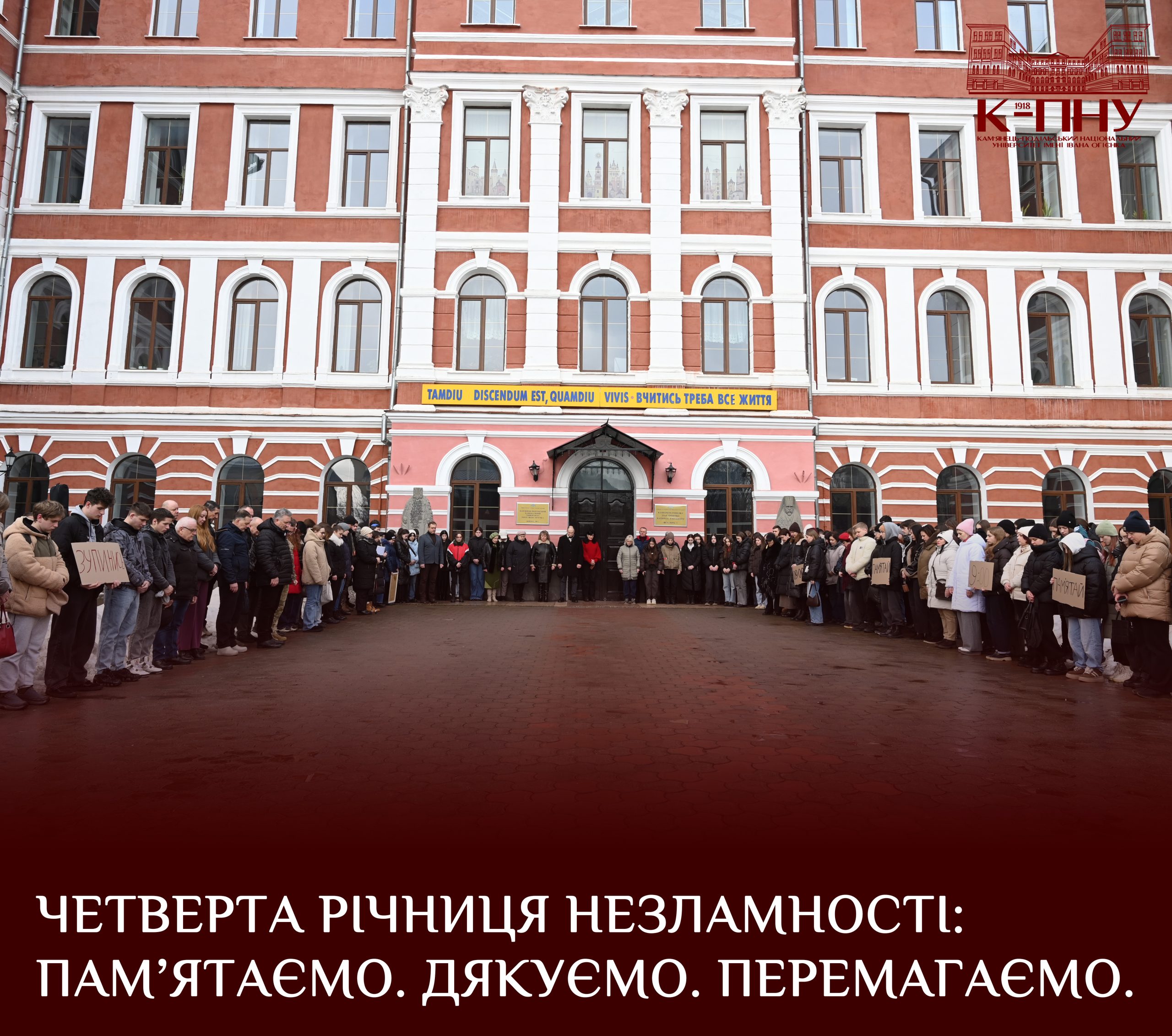 24 лютого в Кам’янець-Подільському національному університеті імені Івана Огієнка відбулася загальноуніверситетська хвилина мовчання, присвячена четвертій річниці початку повномасштабної московської агресії.