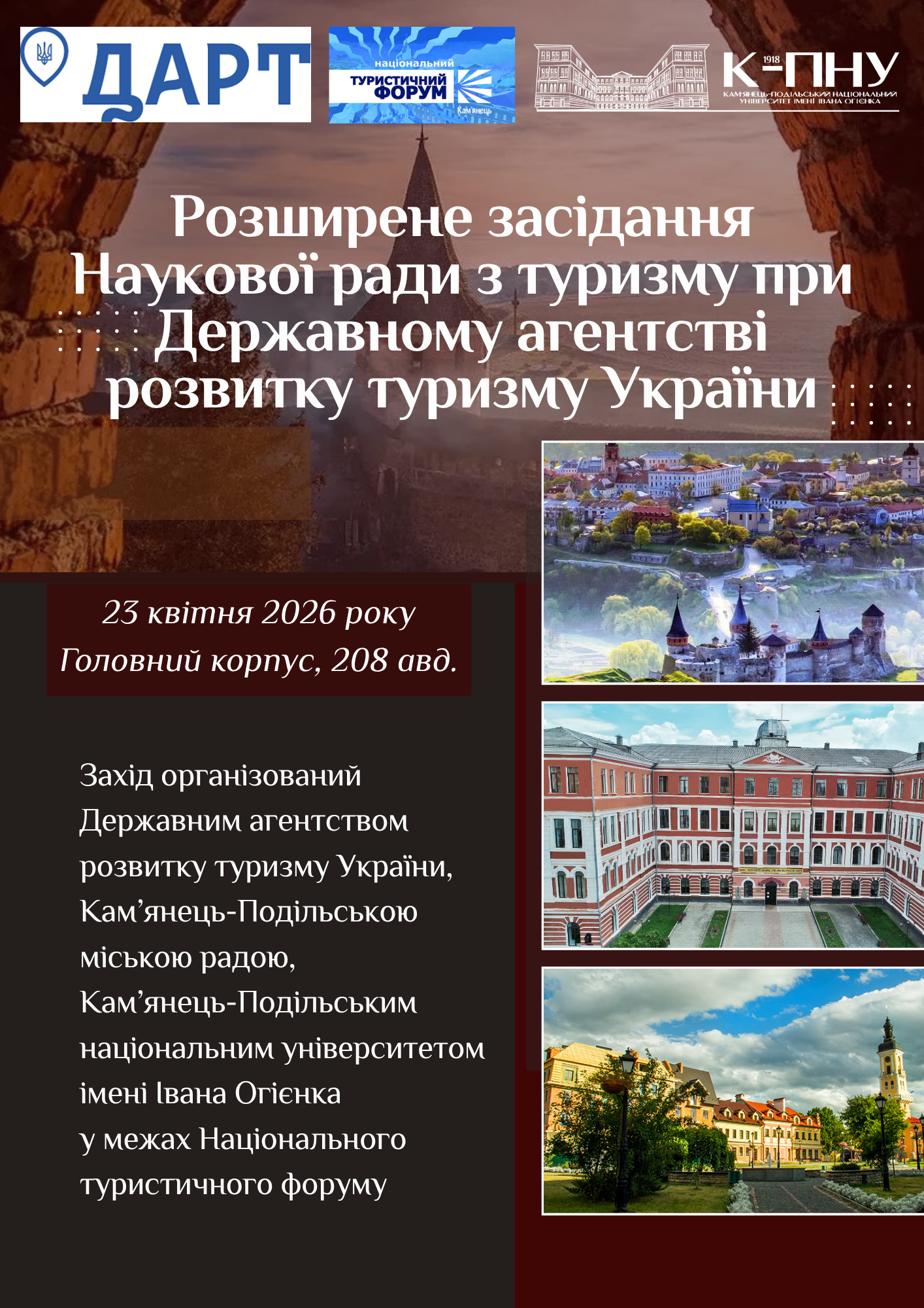 23 квітня 2026 року (208 авд., головний корпус) відбудеться розширене засідання Наукової ради з туризму при Державному агентстві розвитку туризму України.