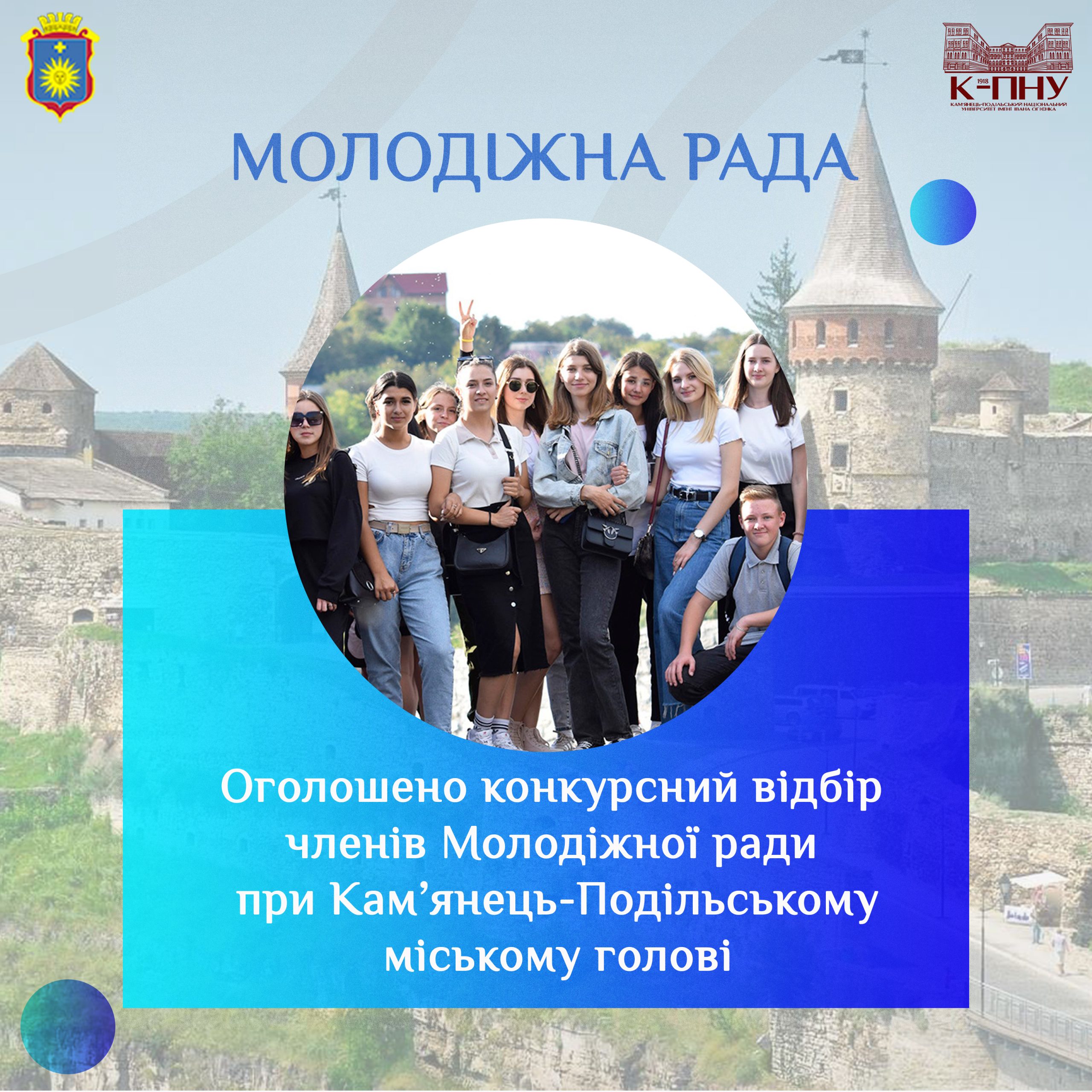 Оголошено конкурсний відбір членів Молодіжної ради при Кам’янець-Подільському міському голові. Для того, щоб взяти участь, кандидатам потрібно подати заяву за встановленою формою, до