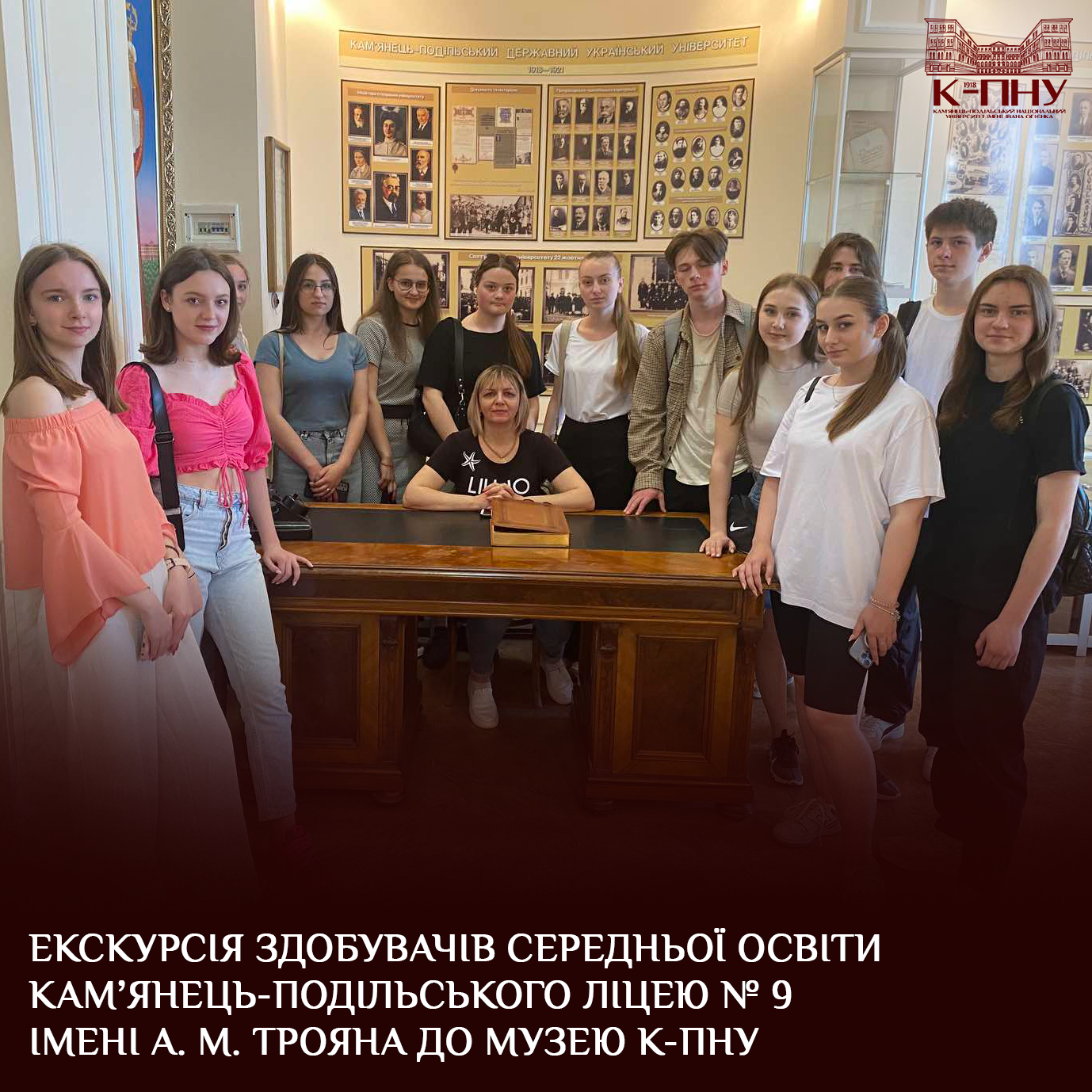 Екскурсія здобувачів середньої освіти Кам’янець-Подільського ліцею № 9 імені А. М. Трояна до музею К-ПНУ