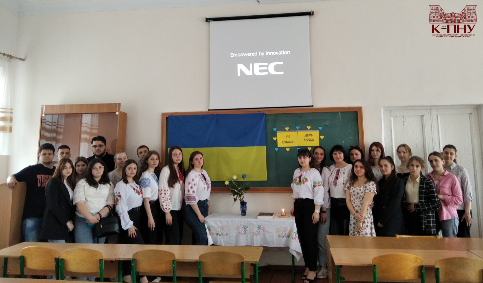 Відеофільм до Дня Героїв, хвилина мовчання, свічка пам’яті, болісні, чуттєві і надзвичайно проникливі вірші, спогади про Героя – випускника нашого факультету – Миколу Гордійчука, покладання квітів до меморіальної дошки, відкритої на його честь… І сльози… Сльози кожного учасника, невимовний біль за усіх полеглих Героїв і за тих, хто зараз виборює наше право на життя, на навчання, на прогулянку з друзями, за тих, хто платить найдорожчу ціну – віддає своє життя і здоров’я за кожного з нас…