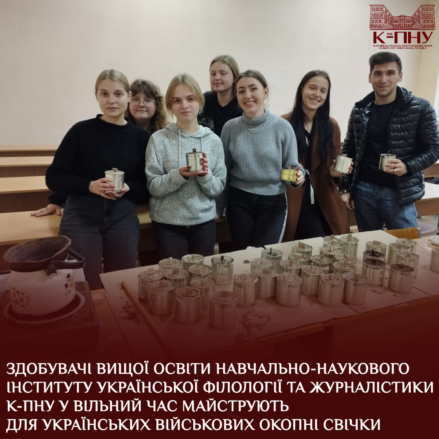 Нехитра приспособа дозволяє генерувати світло й тепло впродовж тривалого часу. У холодну пору такі свічки дуже важливі для захисників, тому першокурсники при будь-якій нагоді раді допомогти, зробити свій маленький внесок у Перемогу.