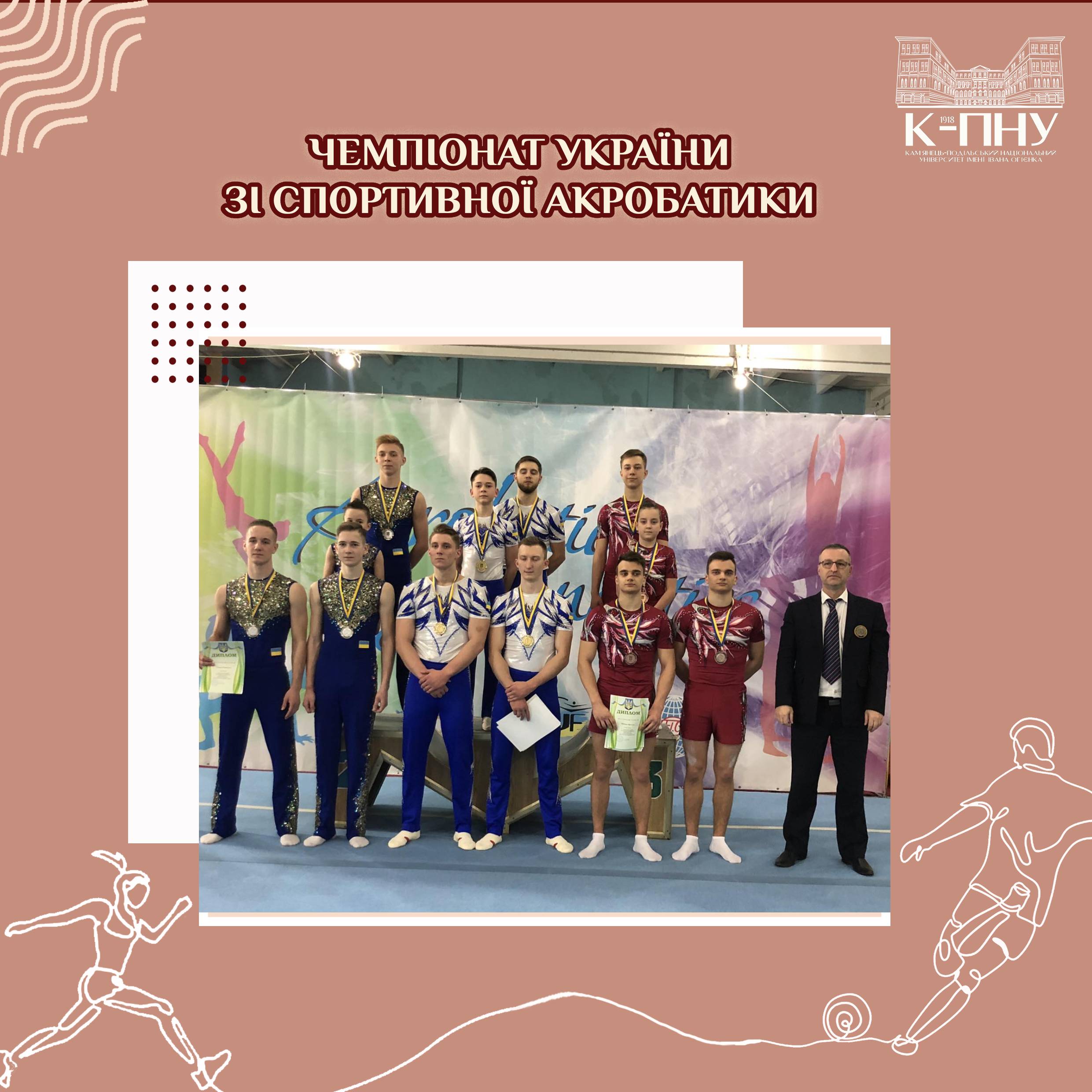 03-08 березня у Вінниці проходив чемпіонат України зі спортивної акробатики, у якому студенти 3 курсу факультету фізичної культури К-ПНУ Ілля Набивач і Ярослав Набивач тричі стали бронзовими призерами: у І, ІІ вправах та в багатоборстві.