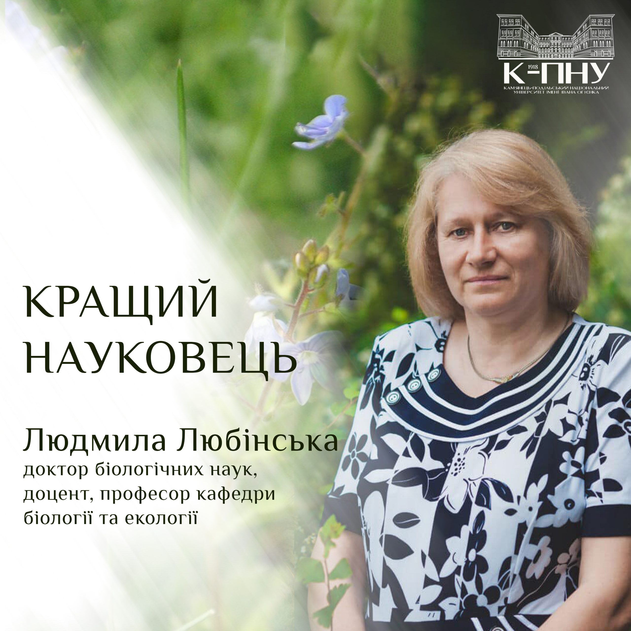 Доктору біологічних наук, доценту, професору кафедри біології та екології Людмилі Любінській присуджено Хмельницьку обласну премію імені Миколи Дарманського в галузі освіти та науки в категорії «Кращий науковець».