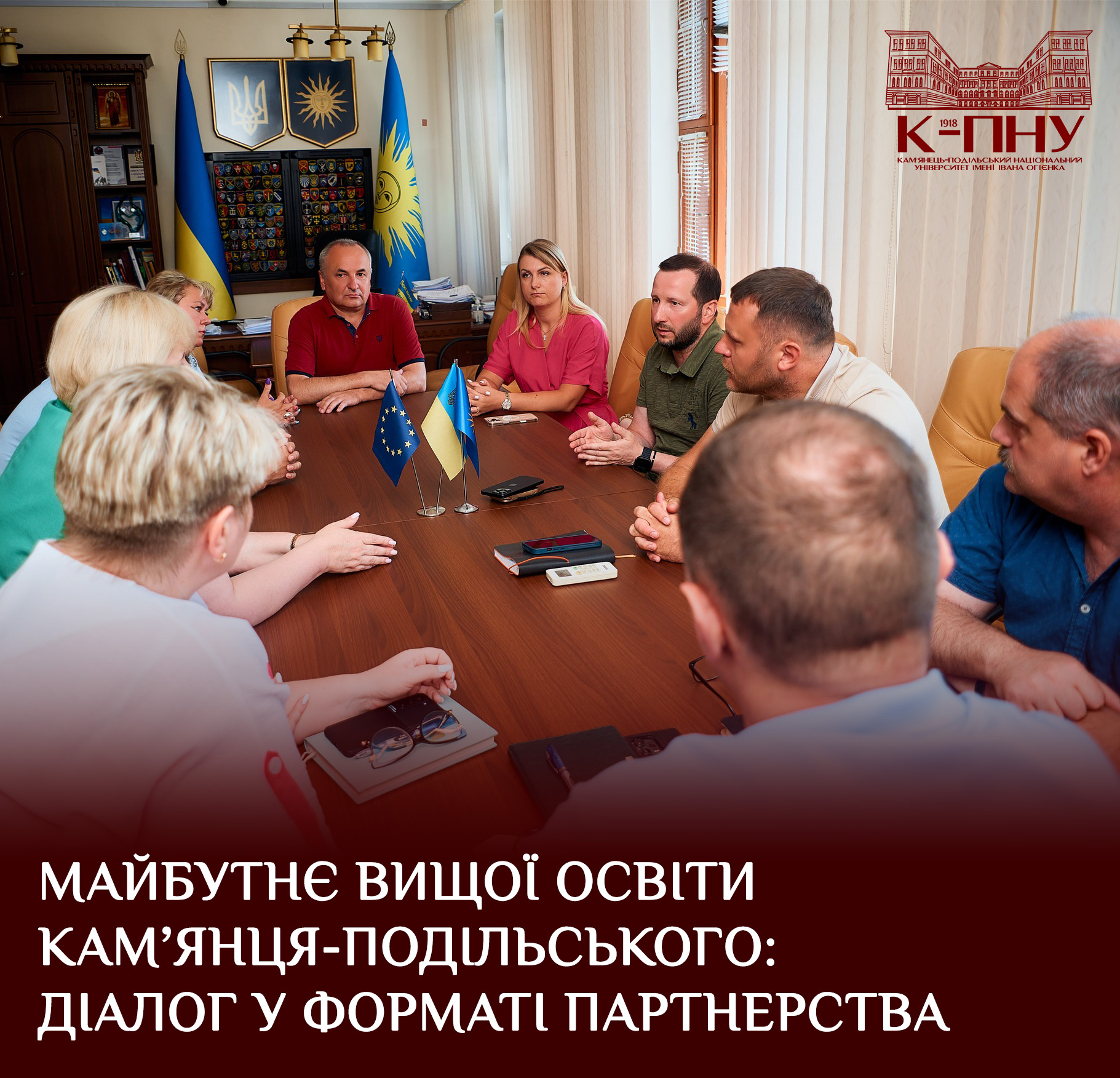 08 липня відбулась спільна зустріч із головою Хмельницької ОДА Сергієм Тюріним, Камʼянець-Подільським міським головою Михайлом Посітком, керівництвом Камʼянець-Подільського національного університету імені Івана Огієнка та Подільського державного університету задля обговорення ключових питань, які є важливими до вирішення перед початком обʼєднання університетів.