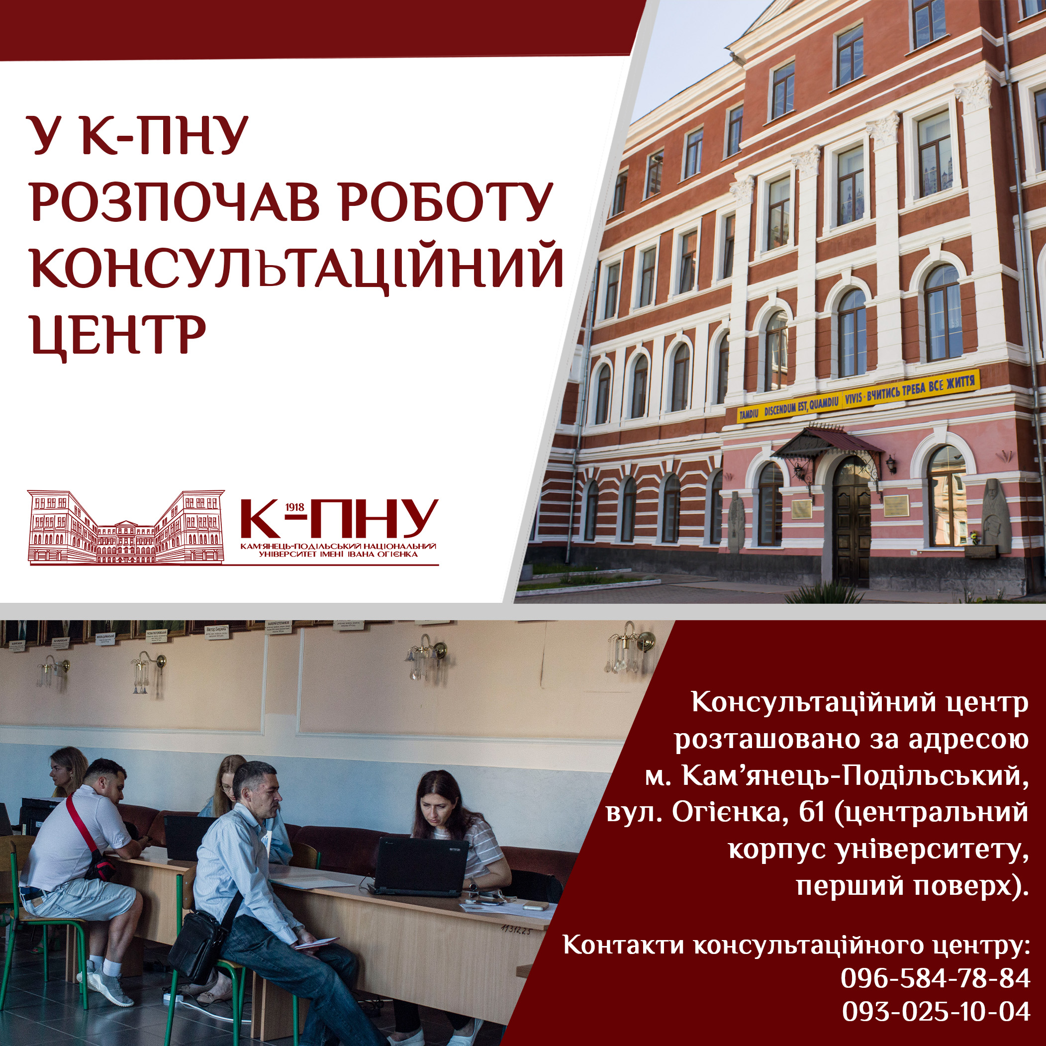 Консультаційний центр розташовано за адресою м. Кам’янець-Подільський, вул. Огієнка, 61 (центральний корпус університету).