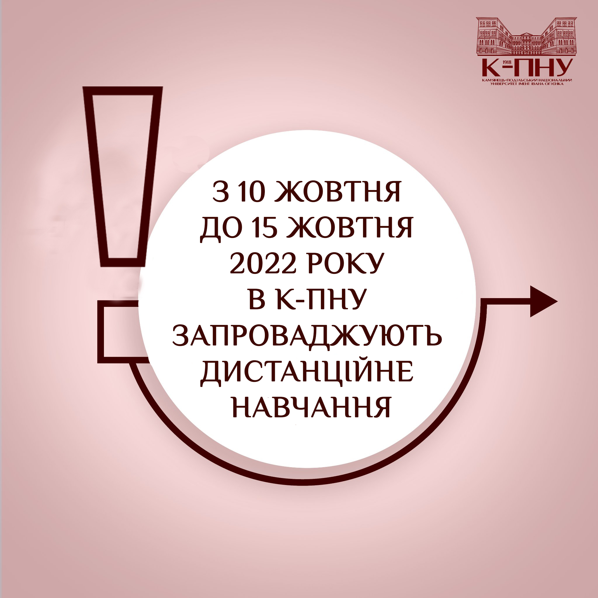 з 10 жовтня до 15 жовтня 2022 року в К-ПНУ запроваджують дистанційне навчання