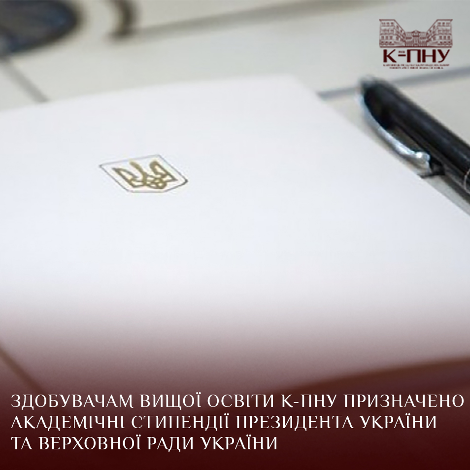 Здобувачам вищої освіти К-ПНУ призначено академічні стипендії Президента України та Верховної Ради України
