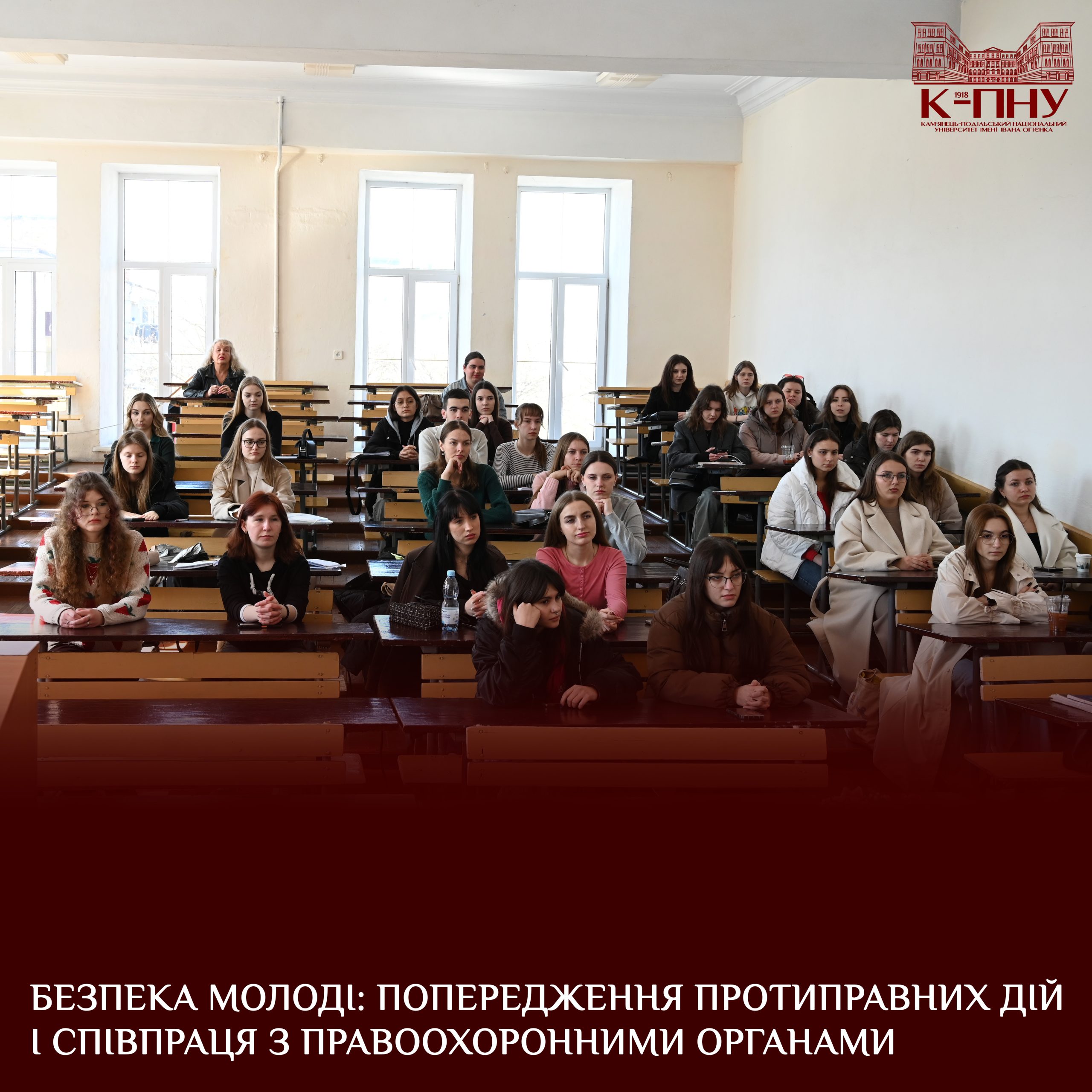 9 березня 2026 року на факультеті іноземної філології К-ПНУ відбулася зустріч здобувачів вищої освіти з представниками правоохоронних органів. Темою зустрічі стало обговорення питань, що стосуються попередження протиправних дій серед здобувачів вищої освіти та застереження їх від можливих небезпек, зокрема в умовах сучасних соціальних і політичних реалій.