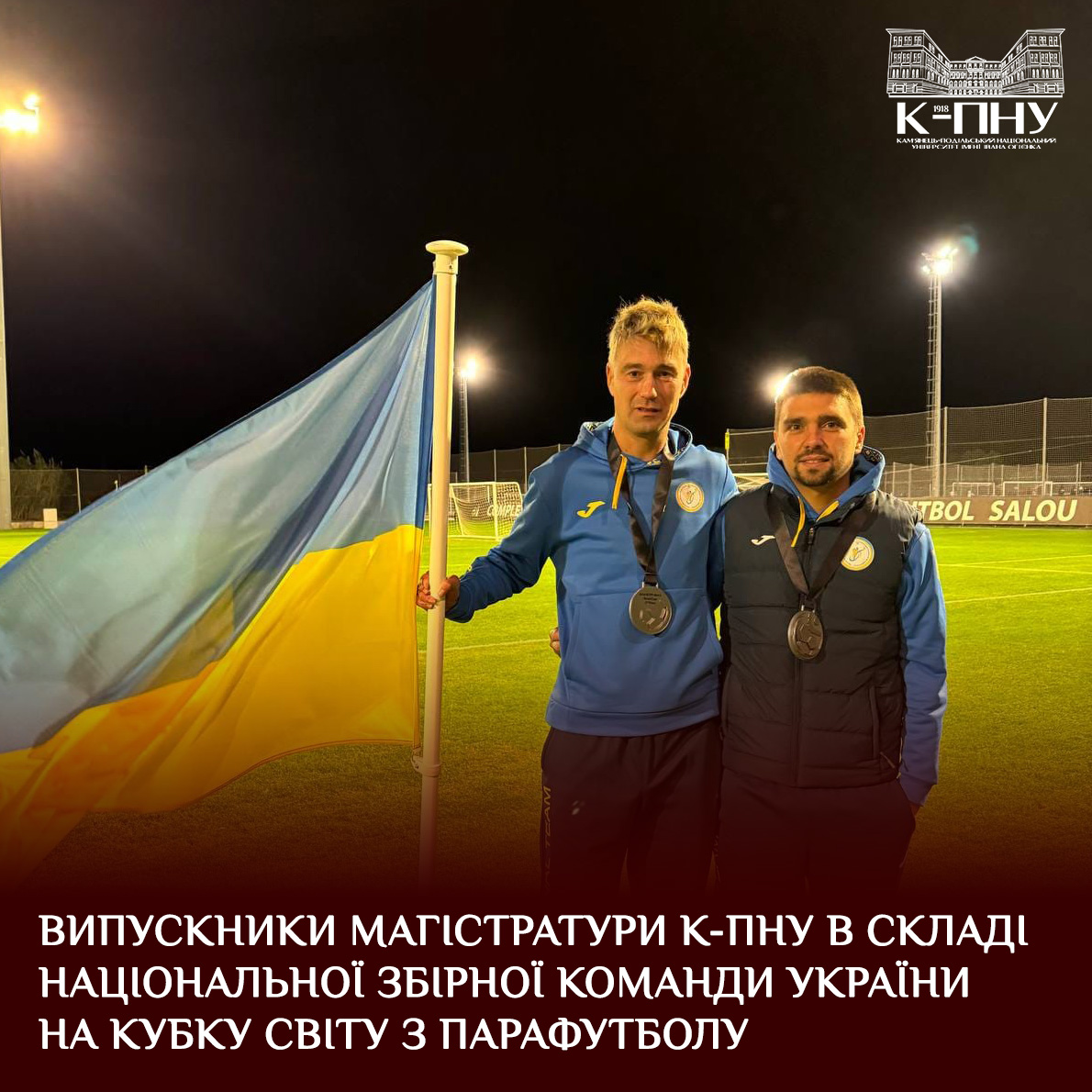 Представники з Хмельниччини, випускники магістратури К-ПНУ спеціальності 017 Фізична культура і спорт Віталій Трушев (голова Асоціації випускників Кам’янець-Подільського національного університету імені Івана Огієнка) та Антон Балакай у складі національної збірної команди України стали срібними призерами Кубку світу з парафутболу.