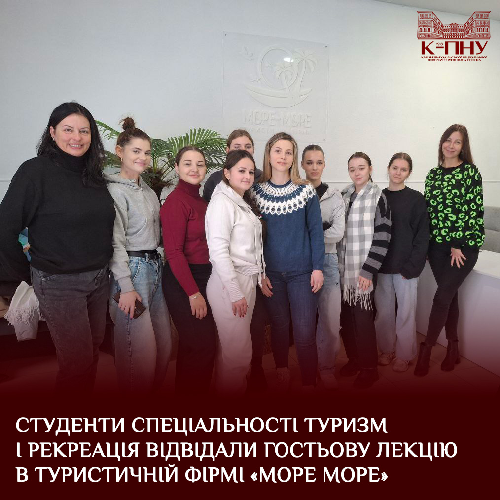 Студенти спеціальності Туризм і рекреація разом із доцентом кафедри туризму та готельно-ресторанної справи Богданою Опрею відвідали гостьову лекцію в туристичній фірмі «Море Море». Захід став справжньою знахідкою для молодих фахівців, які прагнуть розширити свої знання про сучасну туристичну індустрію. Експерти компанії поділилися власним досвідом і розповіли про основні аспекти створення, просування та продажу туристичних продуктів, підкресливши важливість індивідуального підходу до клієнтів. Читати далі