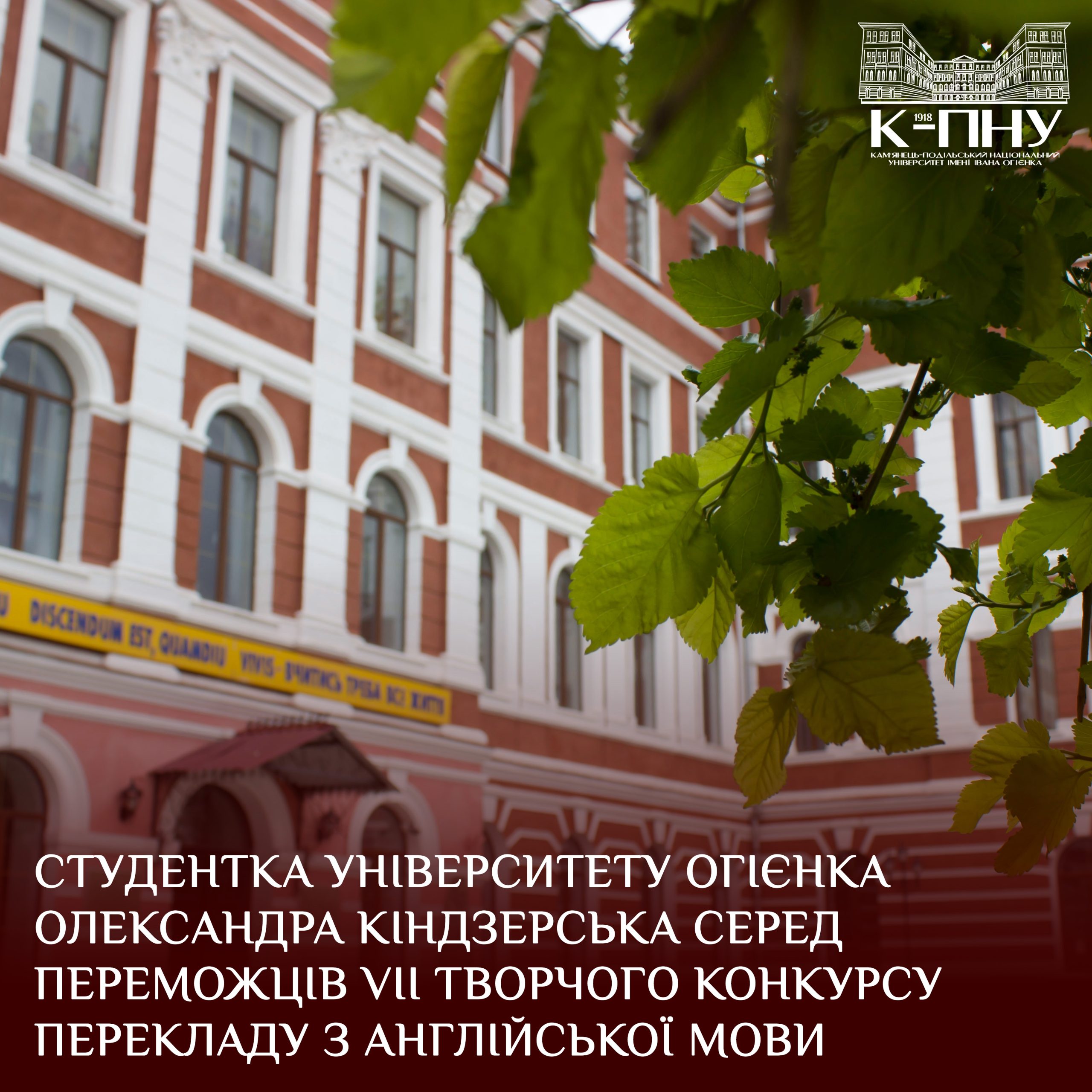 Студентка Університету Огієнка Олександра Кіндзерська серед переможців VII творчого конкурсу перекладу з англійської мови