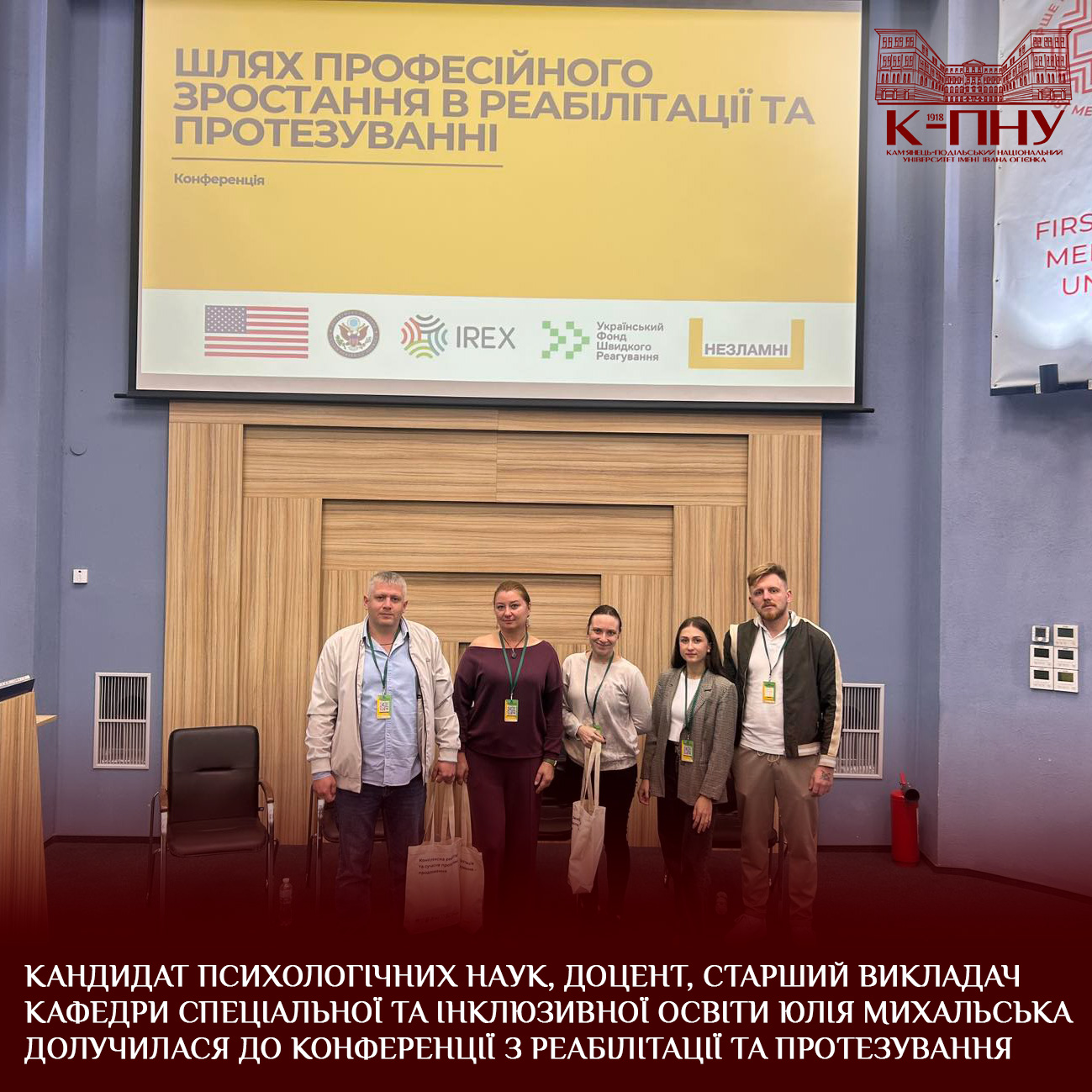 Із 26 до 29 вересня кандидат психологічних наук, доцент, старший викладач кафедри спеціальної та інклюзивної освіти Юлія Михальська взяла участь у конференції «Шлях професійного зростання в реабілітації та протезуванні».