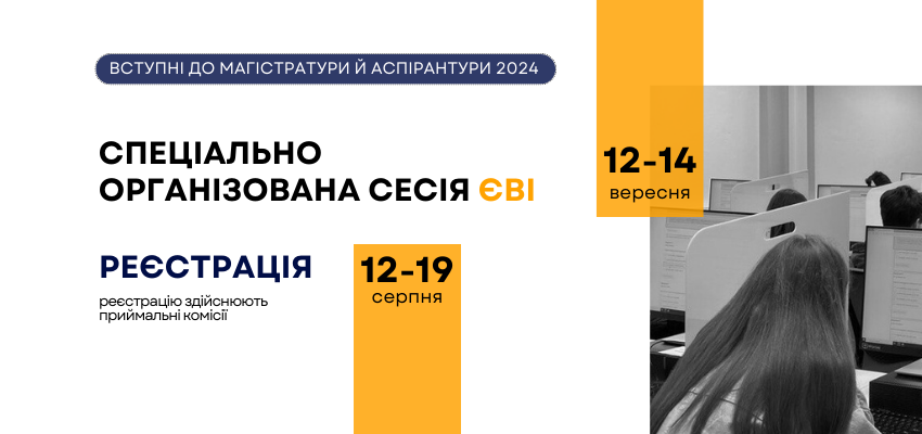 Цю сесію буде організовано для вступників, які не реєструвалися для участі в основній чи додатковій сесії ЄВІ або зареєструвалися, але не взяли в ній участі. Також повторно можуть скласти цей іспит ті, хто бажає покращити свої результати й скористатися шансом на вступ до магістратури / аспірантури у 2024 році. Читати далі