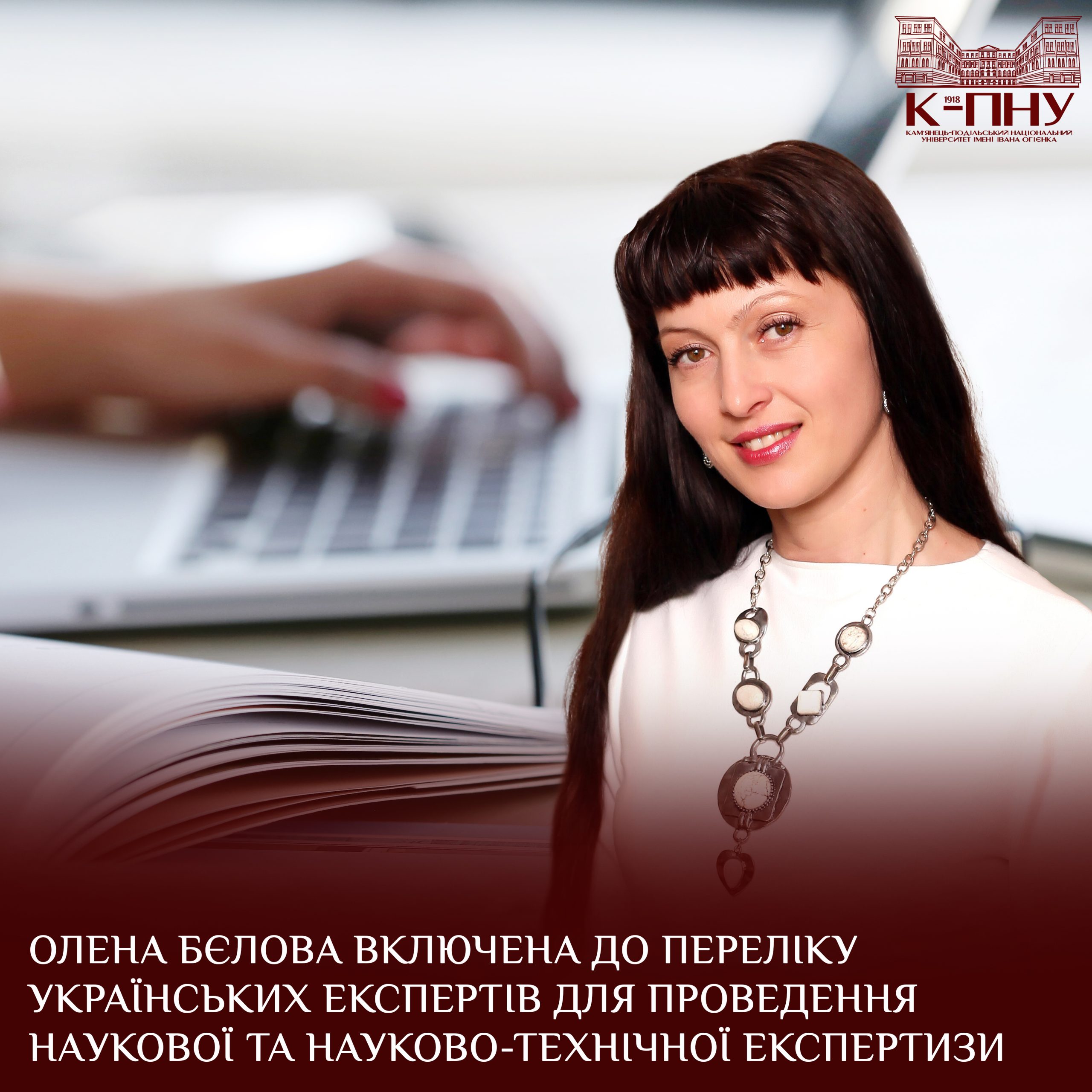 Олена Бєлова включена до переліку українських експертів для проведення наукової та науково-технічної експертизи