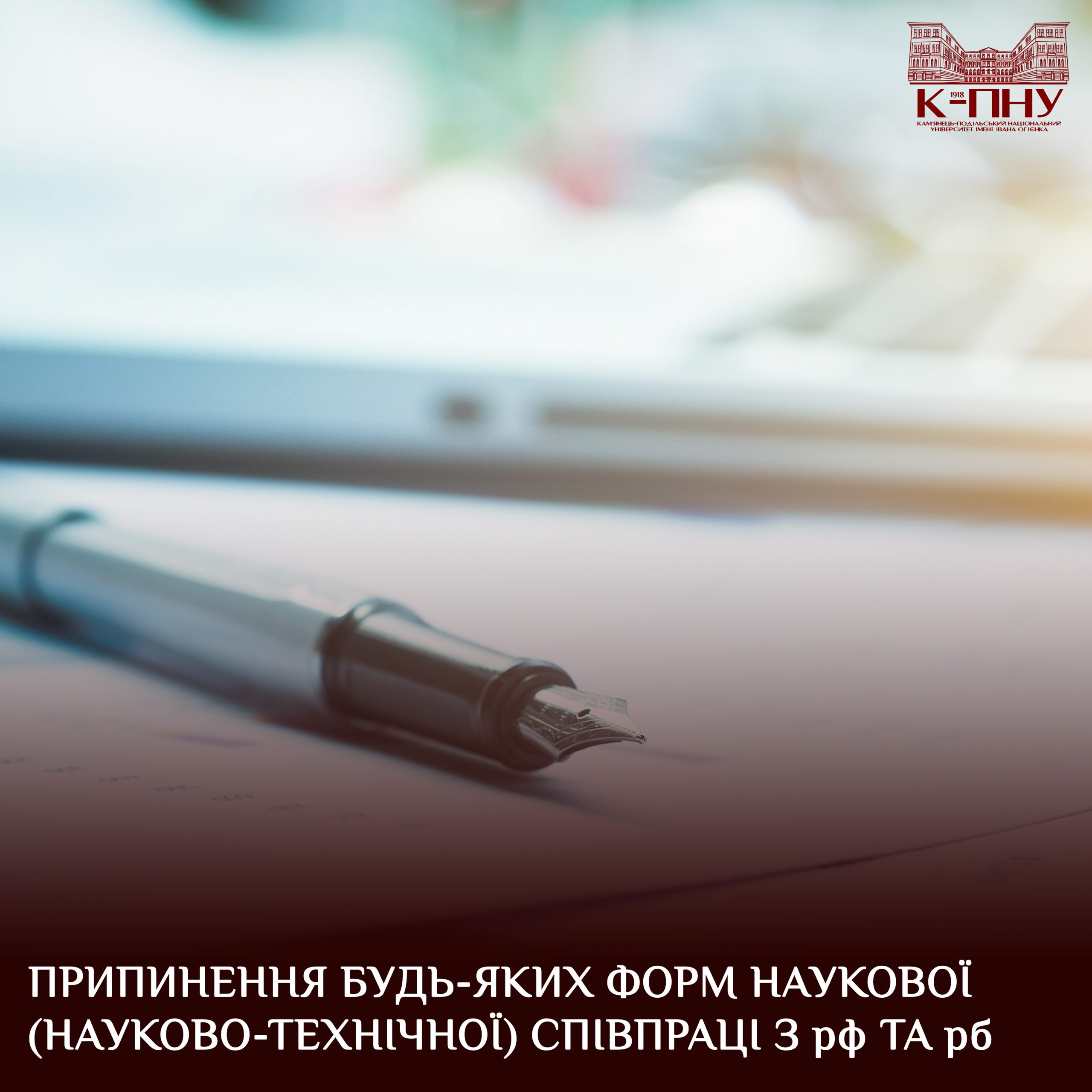 Кам’янець-Подільський національний університет імені Івана Огієнка ще із 2014 року не співпрацював із державою-агресором, а з 2022 року остаточно припинив будь-які форми наукової (науково-технічної) співпраці з рф та республікою білорусь, за підтримки якої рф здійснює агресію проти України. Це питання було розглянуто на засіданнях колегіальних органів управління університетом.