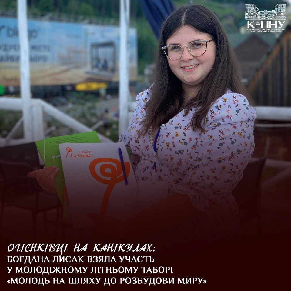 26-30 червня студентка 3 курсу спеціальності 232 Соціальне забезпечення Богдана Лисак взяла участь у молодіжному літньому таборі «Молодь на шляху до розбудови миру» у межах проєкту «Попередження ґендерно зумовленого насильства, торгівлі людьми та порушення прав дитини» за підтримки донорської організації «Хліб для світу».