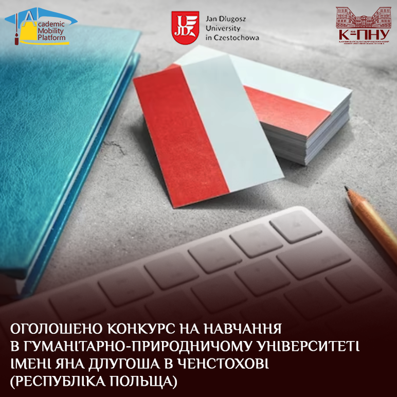 У межах підписаної угоди про співробітництво між К-ПНУ та Гуманітарно-природничим університетом імені Яна Длугоша в Ченстохові (Республіка Польща) оголошено конкурс на участь у міжнародній академічній мобільності у формі навчання. Здобувачі першого та другого рівня здобуття вищої освіти Університету Огієнка мають можливість навчатися впродовж одного семестру (з 01.10. 2023 р. до 31.12.2023 р.) за такими спеціальностями: