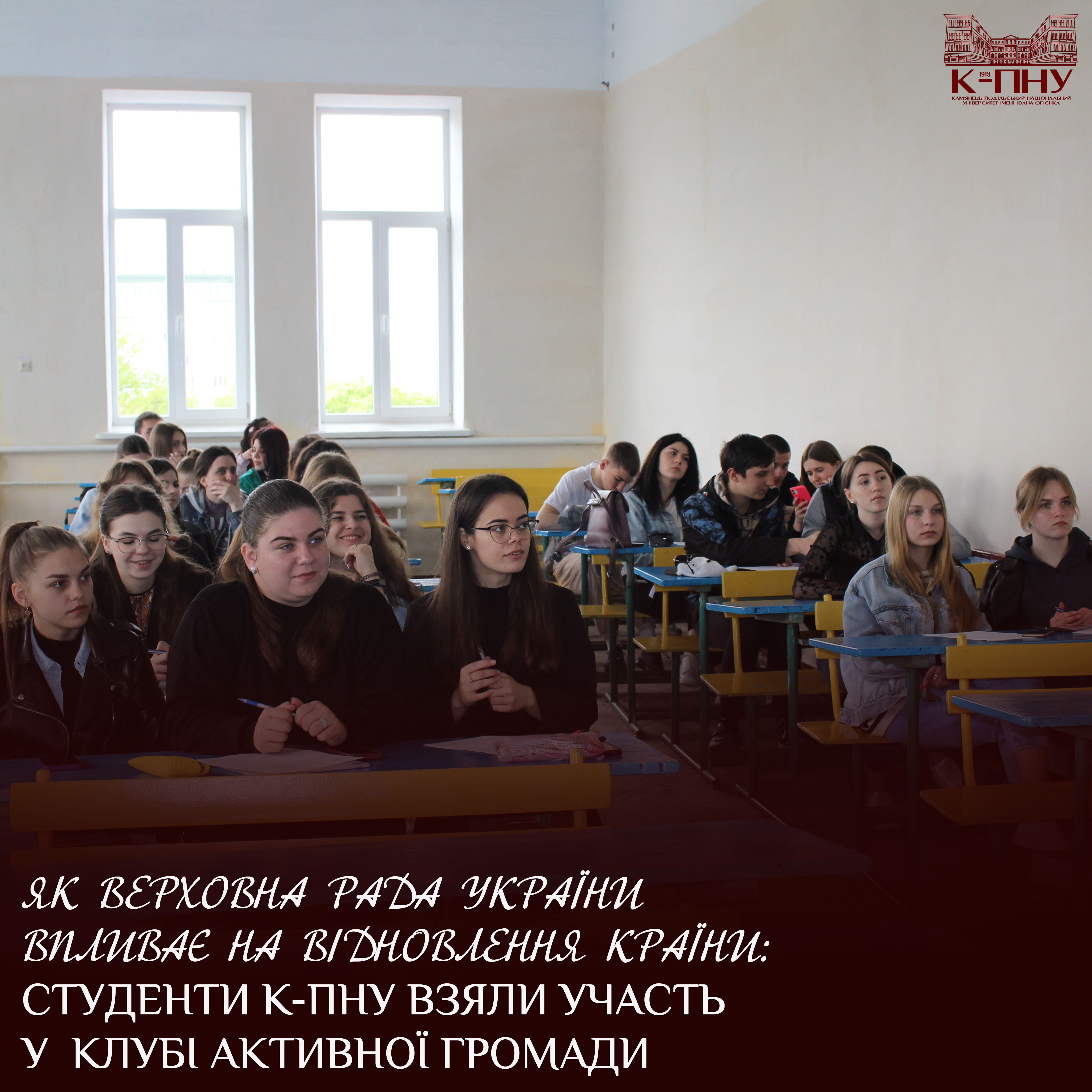 Як Верховна Рада України впливає на відновлення країни: студенти К-ПНУ взяли участь у  Клубі Активної Громади