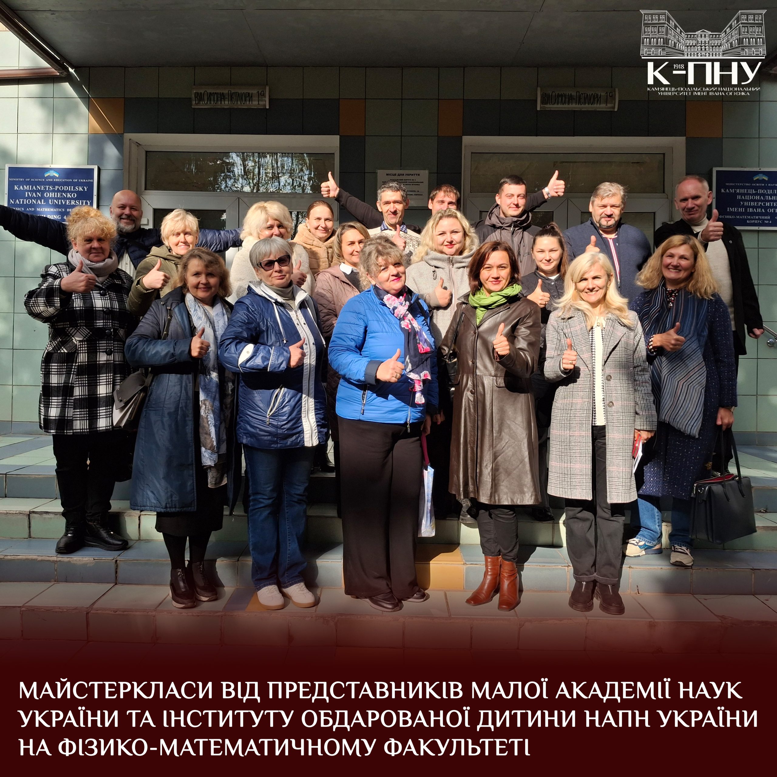 17 жовтня на фізико-математичному факультеті Кам’янець-Подільського національного університету імені Івана Огієнка відбувся науково-дослідний інтенсив із природничих наук для педагогічних працівників закладів загальної середньої освіти та коледжів за участю представників Національного центру «Мала академія наук України» та Інституту обдарованої дитини НАПН України.