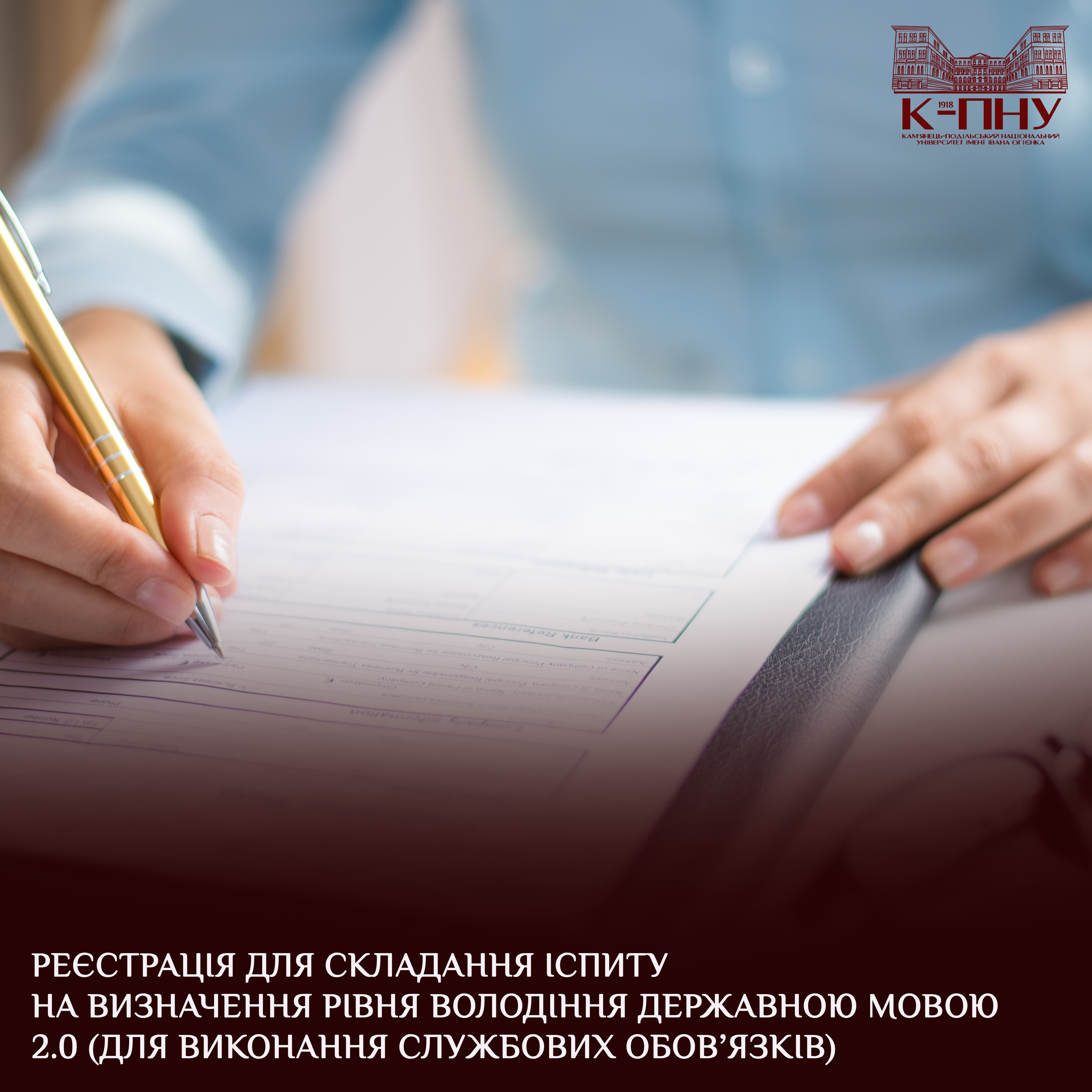 Інформуємо, що на іспитовій локації Кам’янець-Подільського національного університету імені Івана Огієнка відкрито реєстрацію для всіх охочих скласти іспити на визначення рівня володіння державною мовою 2.0 (для виконання службових обов’язків).