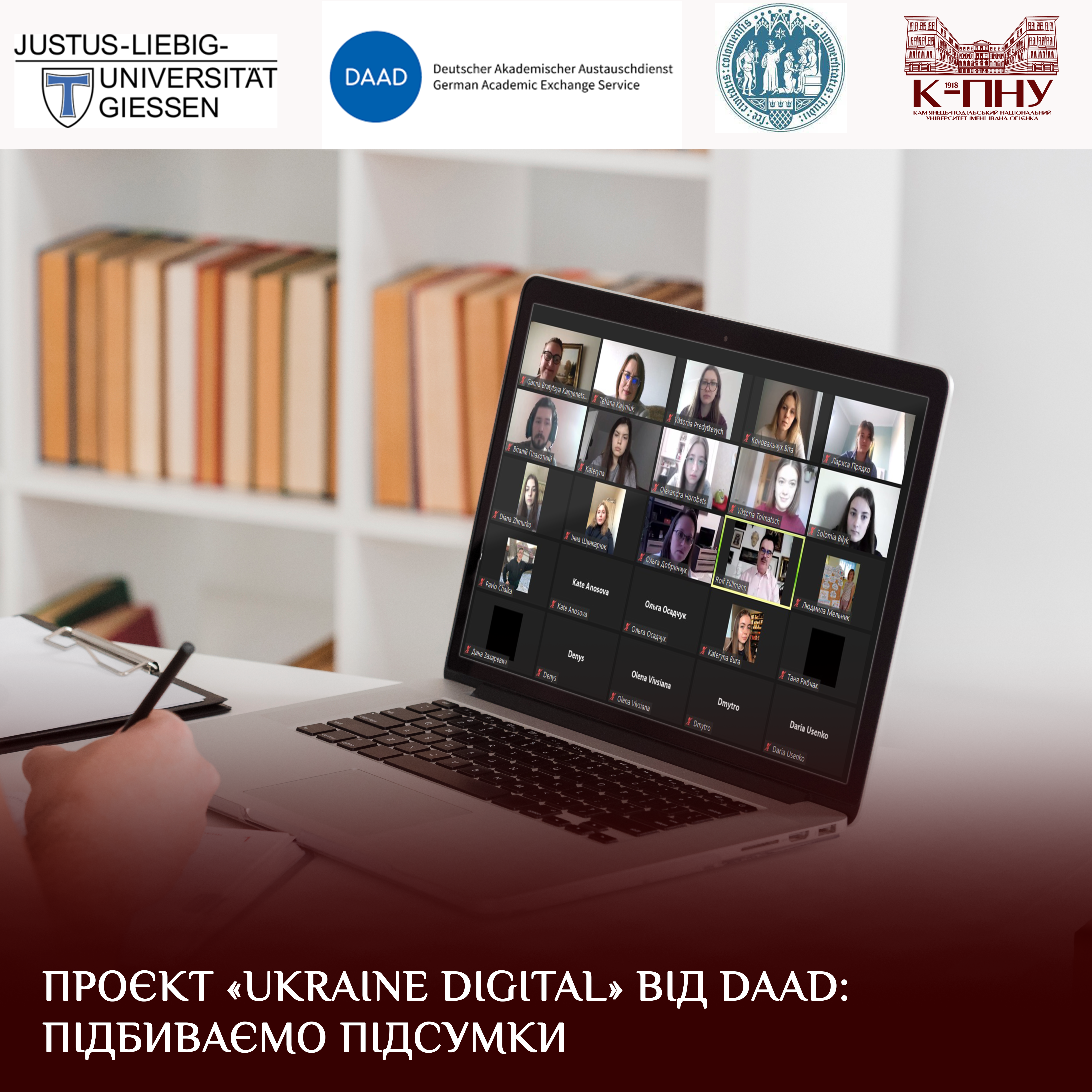 Упродовж трьох місяців 10 здобувачів вищої освіти факультету іноземної філології брали участь у проєкті «Ukraine digital: Studienerfolg in Krisezeiten sichern», який реалізує кафедра німецької мови за сприяння DAAD (Німецької служби академічних обмінів) у партнерстві з  Кельнським університетом, Інститутом німецької мови та літератури і Гіссенським університетом імені Юстуса Лібіха, Інститутом германістики.
