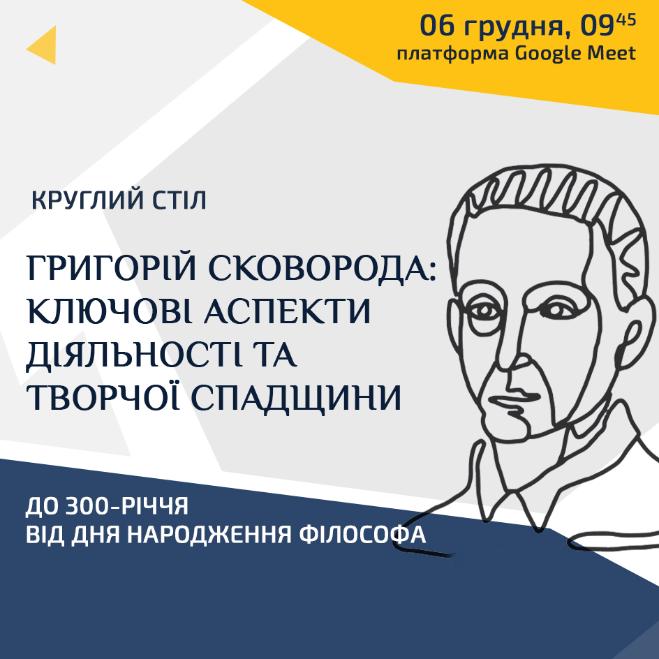 Запрошуємо всіх охочих долучитися до роботи круглого столу «Григорій Сковорода : ключові аспекти діяльності та творчої спадщини (до 300-річчя від дня народження)».
