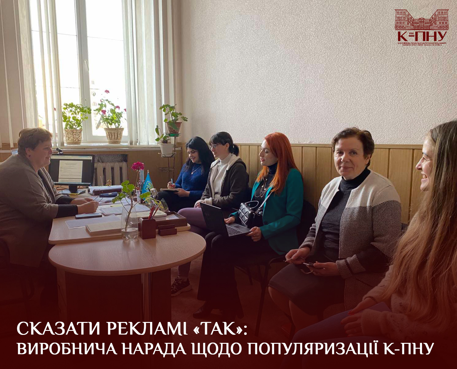 На зустрічі обговорили напрями роботи щодо популяризації К-ПНУ в інформаційному просторі: телебаченні, соціальних мережах (Facebook, Instagram, YouTube), вебсайтах університету та структурних підрозділів тощо.