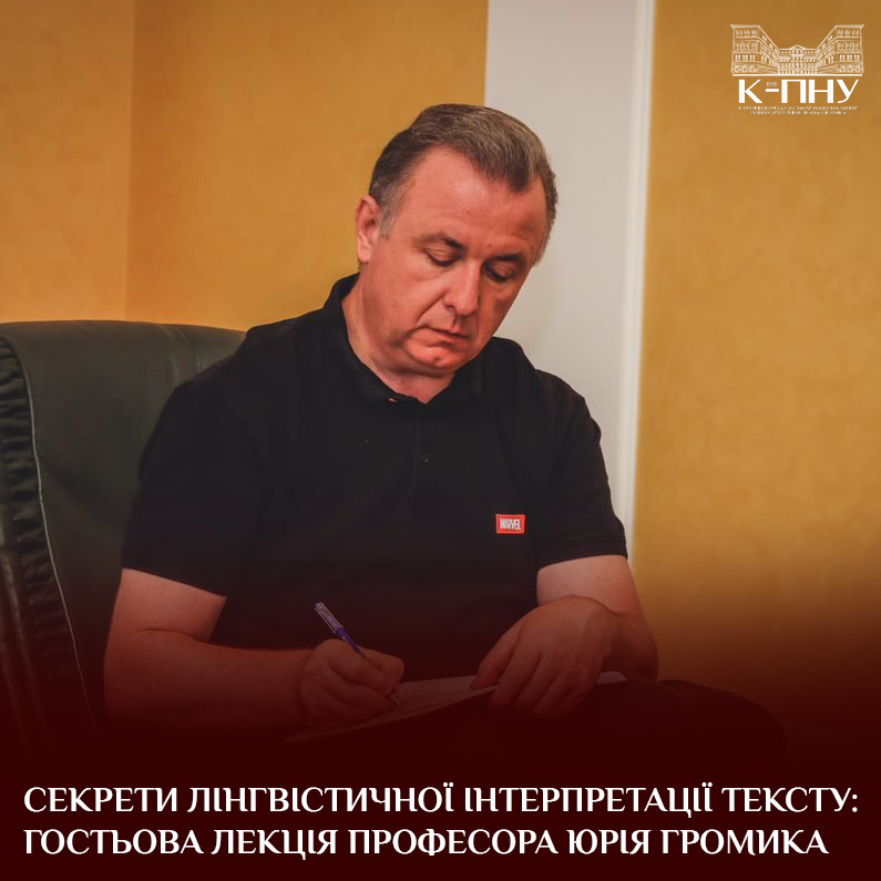 18 жовтня 2022 року гостьову лекцію для здобувачів другого (магістерського) рівня освіти спеціальності 014 Середня освіта (Українська мова і література) навчально-наукового інституту української філології та журналістики з дисципліни «Лінгвістична інтерпретація тексту» прочитав Громик Юрій Васильович, кандидат філологічних наук, професор, проректор з навчальної роботи та рекрутації Волинського національного університету імені Лесі Українки.