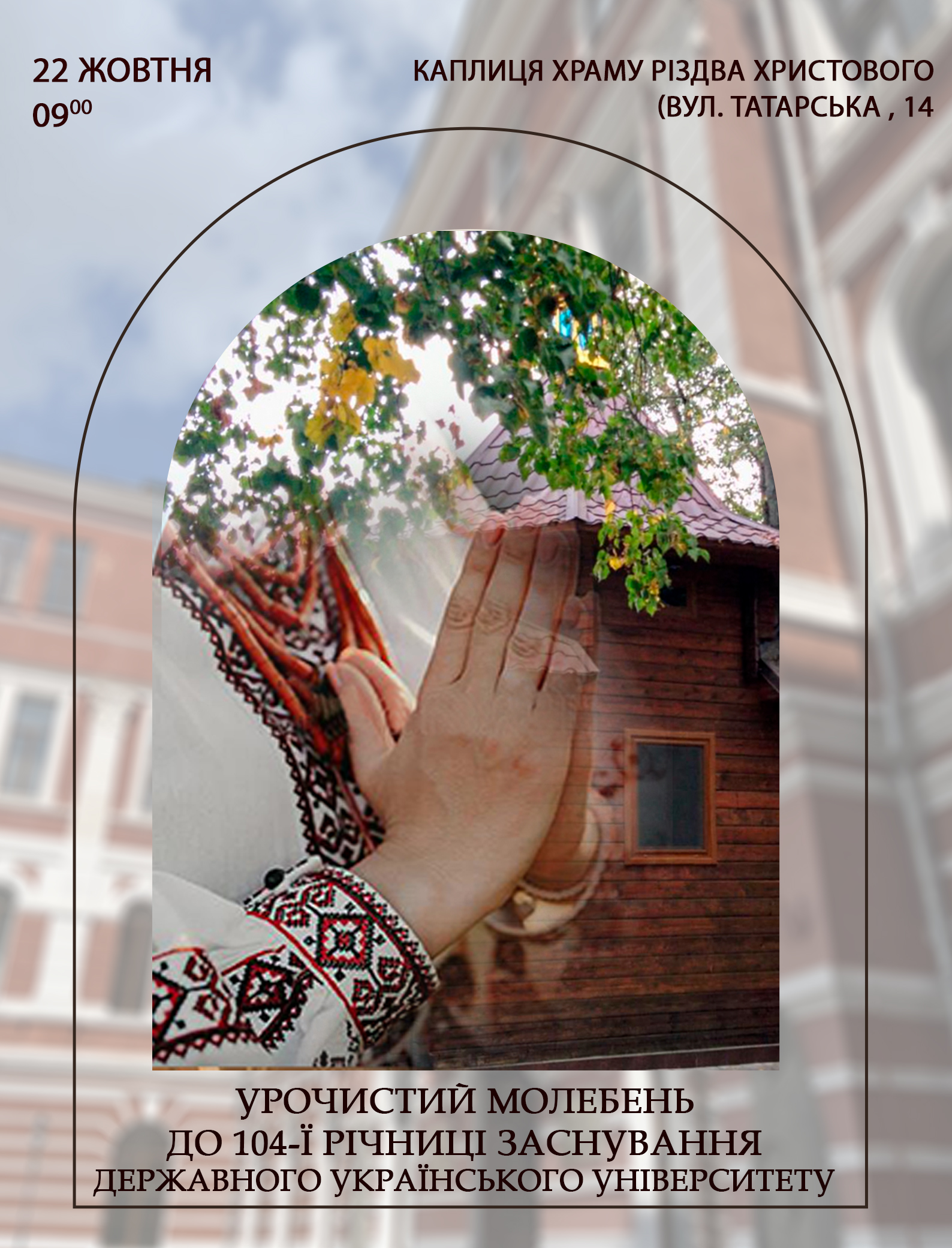 22 жовтня до 104-ї річниці від дня заснування першого Державного Українського Університету відбудеться урочистий молебень.