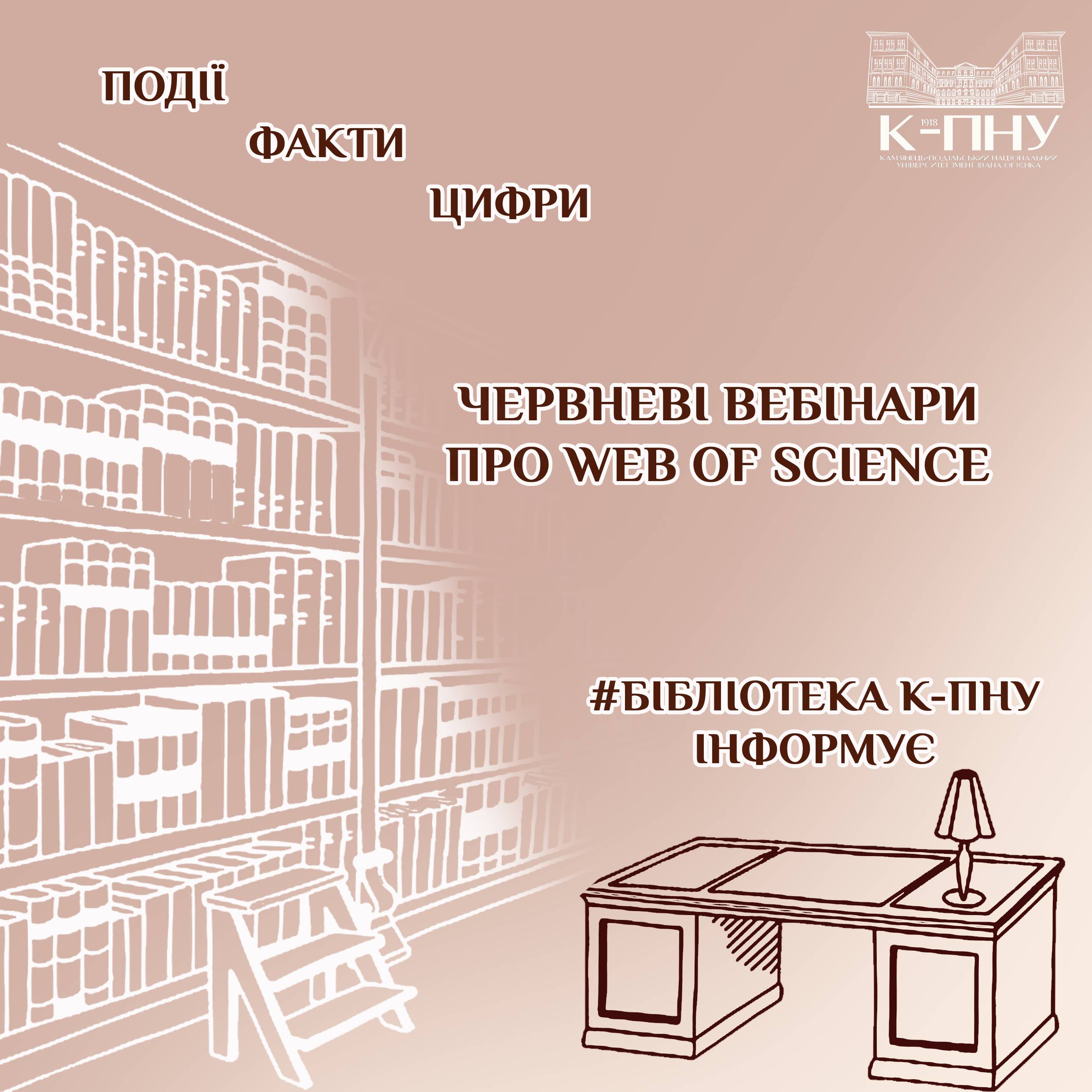 Запрошуємо на червневу серію вебінарів про наукометричну платформу Web of Science. Вебінари проходитимуть на платформі WEBEX за попередньою реєстрацією. Передбачено сертифікат учасника за умови присутності більше 90 % основного часу вебінару.