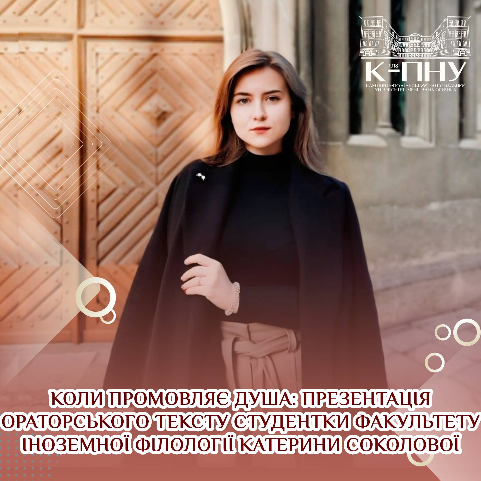 КОЛИ ПРОМОВЛЯЄ ДУША: презентація ораторського тексту студентки факультету іноземної філології Катерини Соколової
