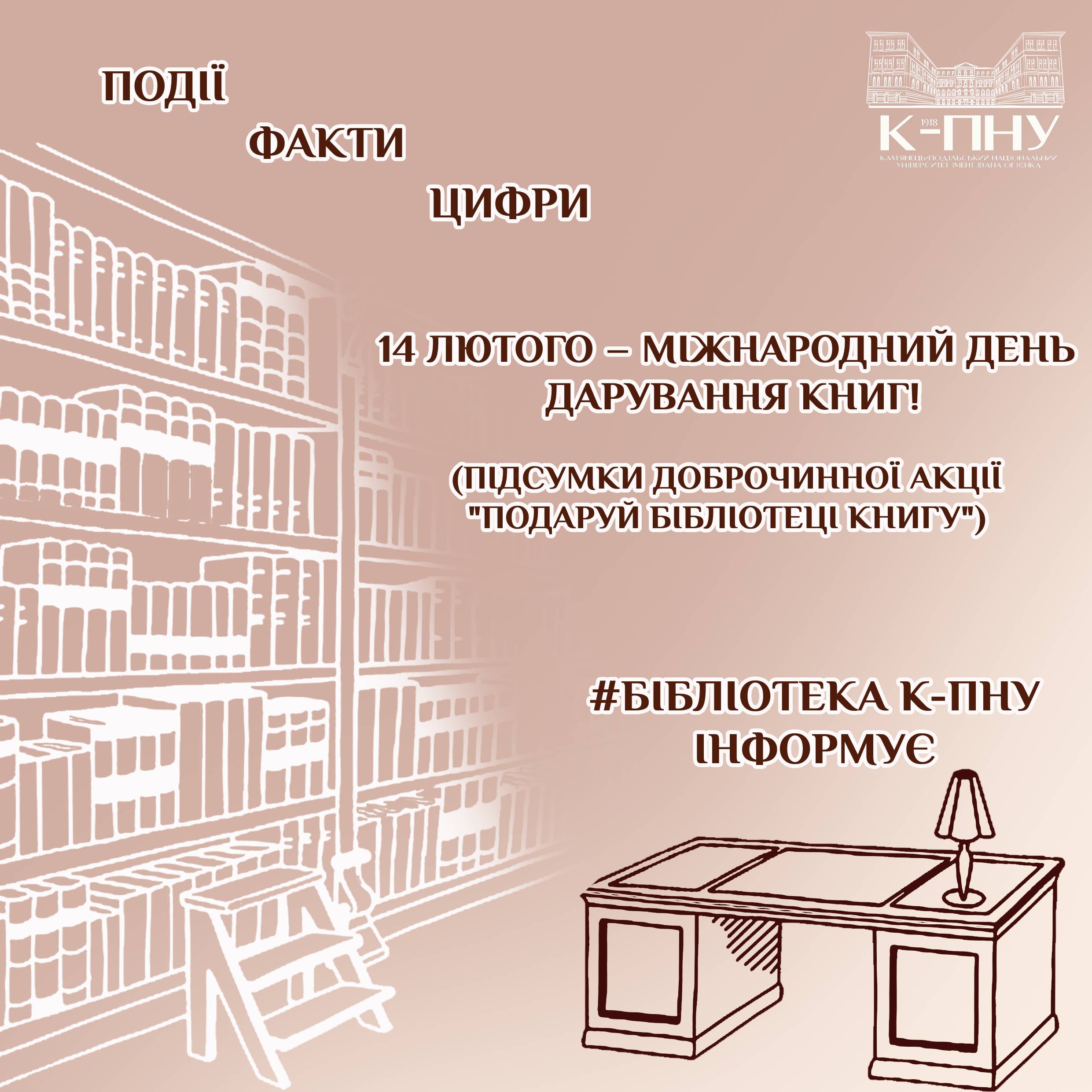 Книга була, є і завжди буде найкращим подарунком бібліотеці. За кожною обкладинкою живе цілий світ, кожна сторінка – знайомства, зустрічі, переживання. Подарована бібліотеці книга – це радість не лише одній людині, адже вона може стати улюбленою для багатьох шанувальників паперових видань. Бо книги в бібліотеці – це книги-мандрівниці, які мандрують від одного читача до іншого. Мабуть, саме ці думки спонукають тих, кого прочитана книга надихає на бажання подарувати її бібліотеці.